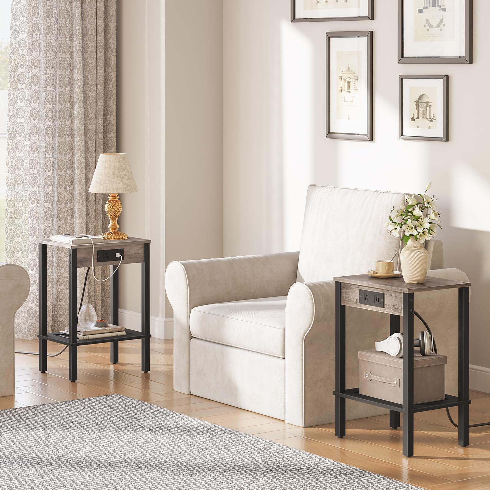 - Convenient Charging: Equipped with 1 AC outlet and 2 USB ports, this end table offers enough charging space for your electronic devices. You can charge phone, tablet or lamp without leaving your bed or sofa, and the trouble of finding plugs will never bother you again
