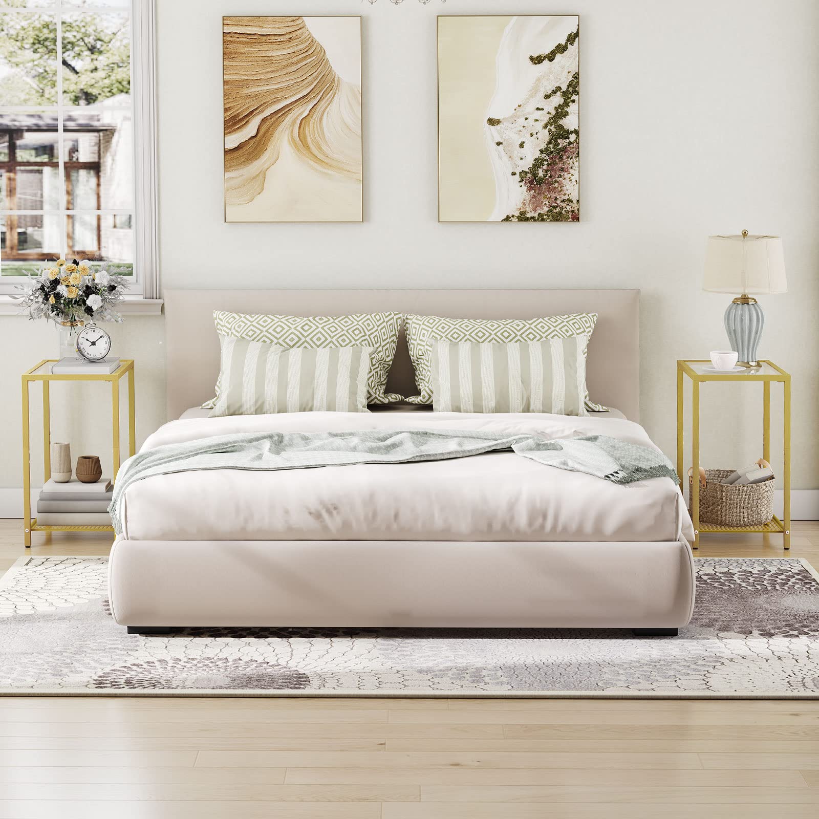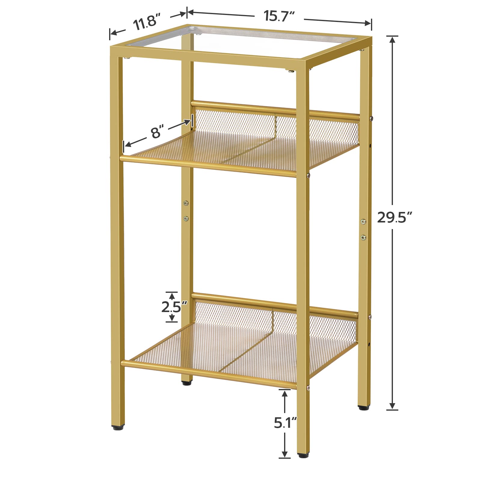 - Stylish Golden Look: This tall side table is minimalist but practical as a combination of chic gold and tempered glass top. Its trim lines and good-ventilated appearance elevate your home decor