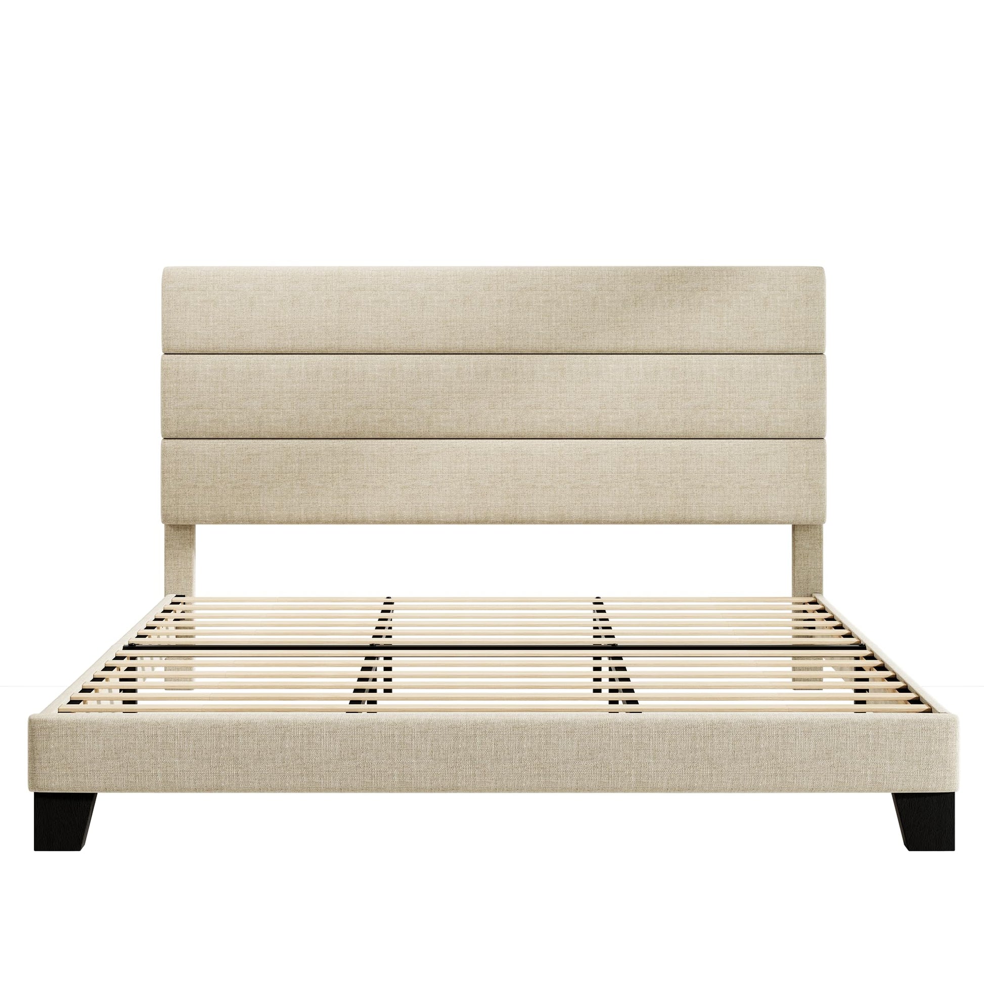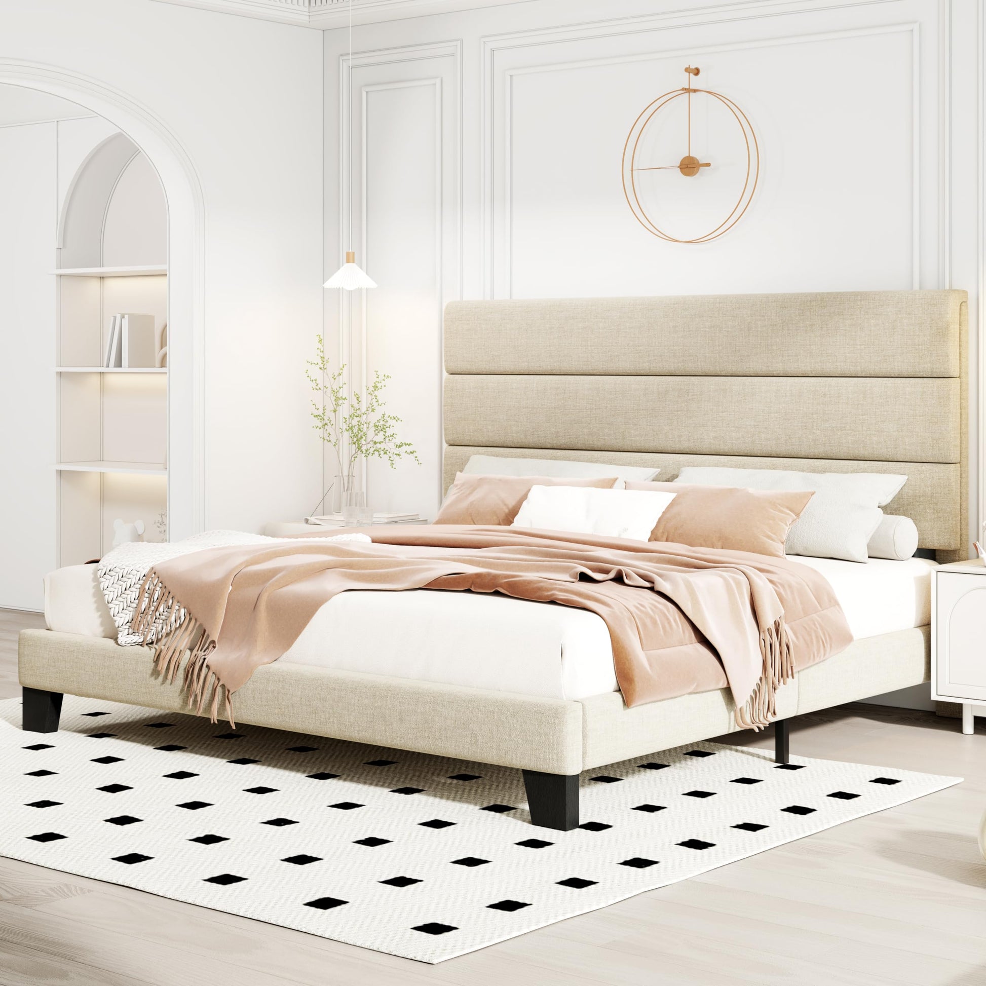 King Size Bed Frame with Headboard, Fabric Upholstered Platform Bed