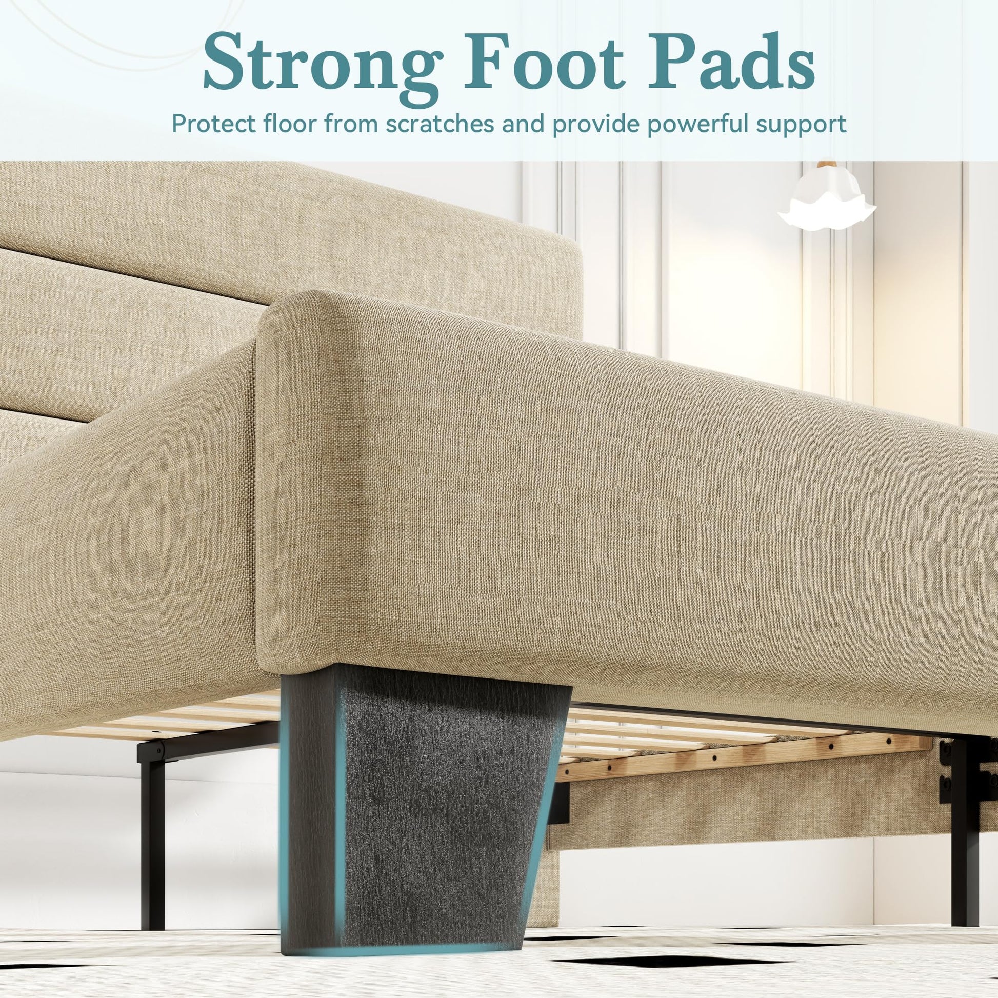 - Simple Durable Design: With an interior steel design with an upholstered fabric linen finish and clean lines, this king-size bed frame creates a contemporary feel for your bedroom.
