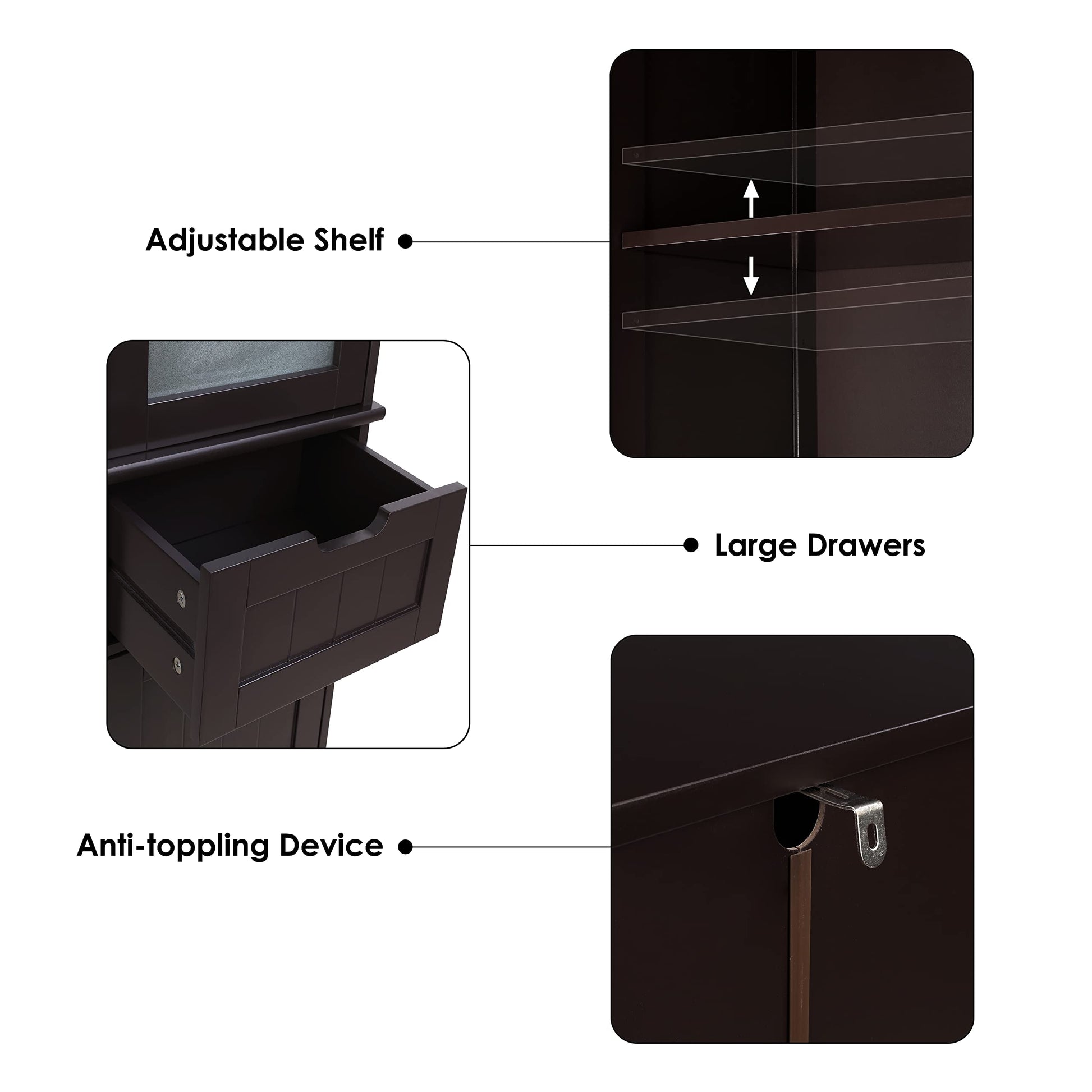 Bathroom Cabinet, Storage Cabinet with 2 Door & 1 Drawer, Floor Freestanding Cabinet with Adjustable Shelves,