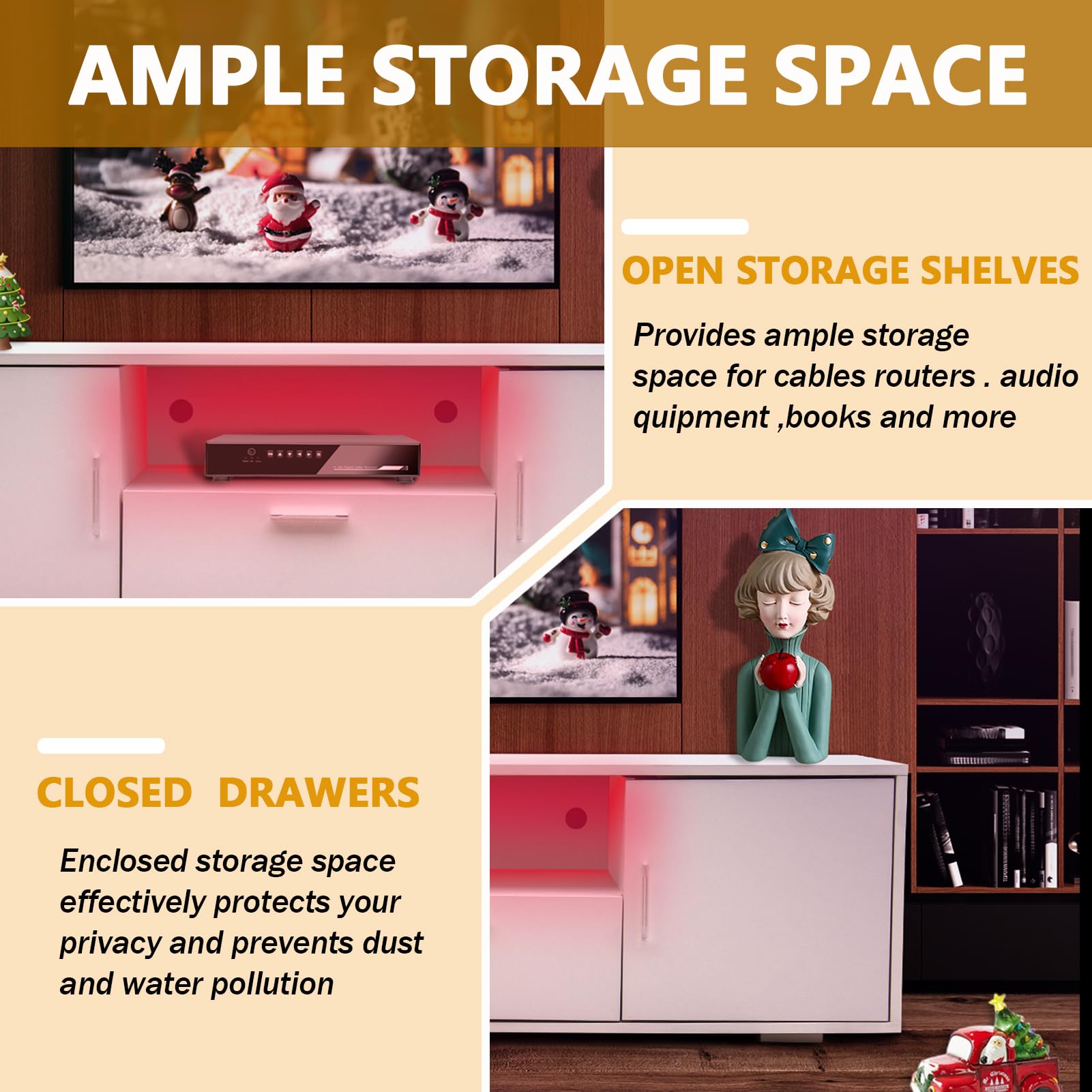 TV Stand for 55 Inch TVs, Modern LED Entertainment Center with Storage Cabinet