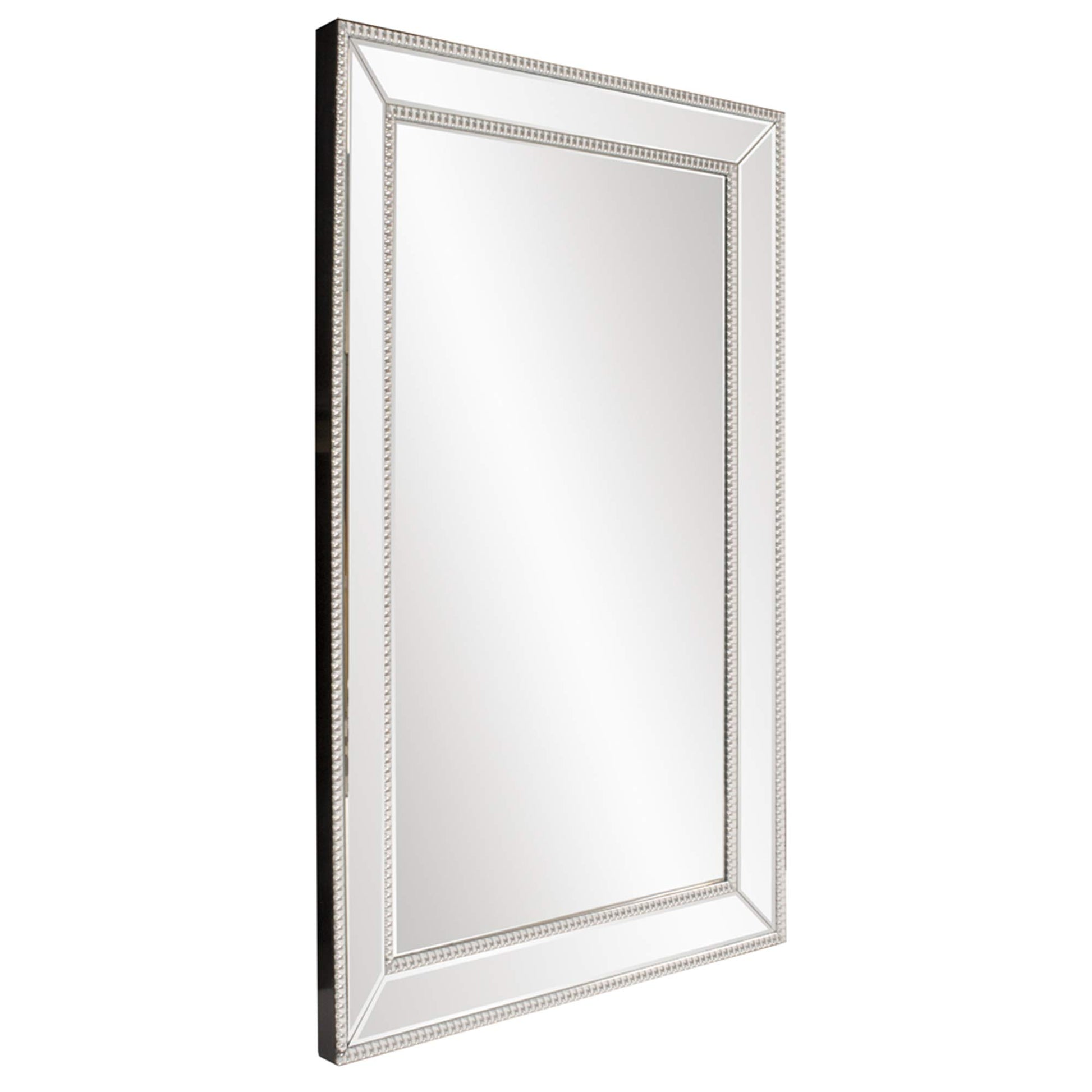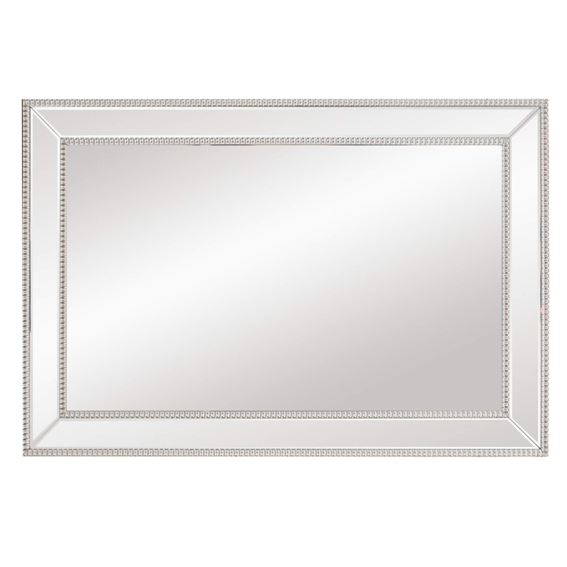 - Features a mirrored frame that is outlined with a glass beaded trim