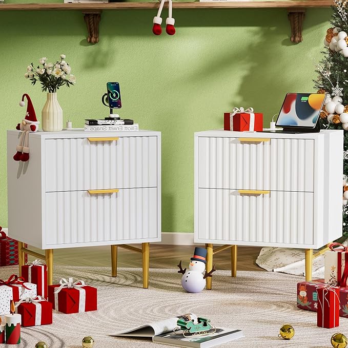 - AMPLE STORAGE AND ASSEMBLE FREELY-- The fluted nightstand is equipped with 2 drawers, easily pull it out, providing generous storage space for stash books, glasses, medicines, or personal essentials. And each set bedroom nightstand comes with detailed instructions, also our 24h on-line customer services, if you have any problems, please contact us freely.