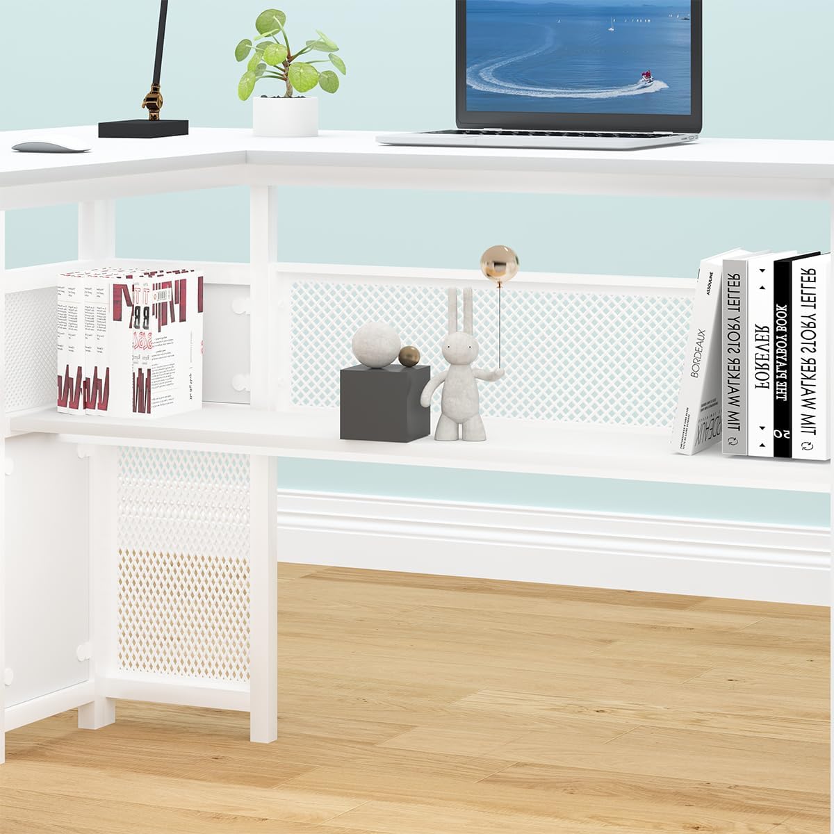 White L Shaped Desk with Drawers Shelves, Large Home Office Corner Computer Desk
