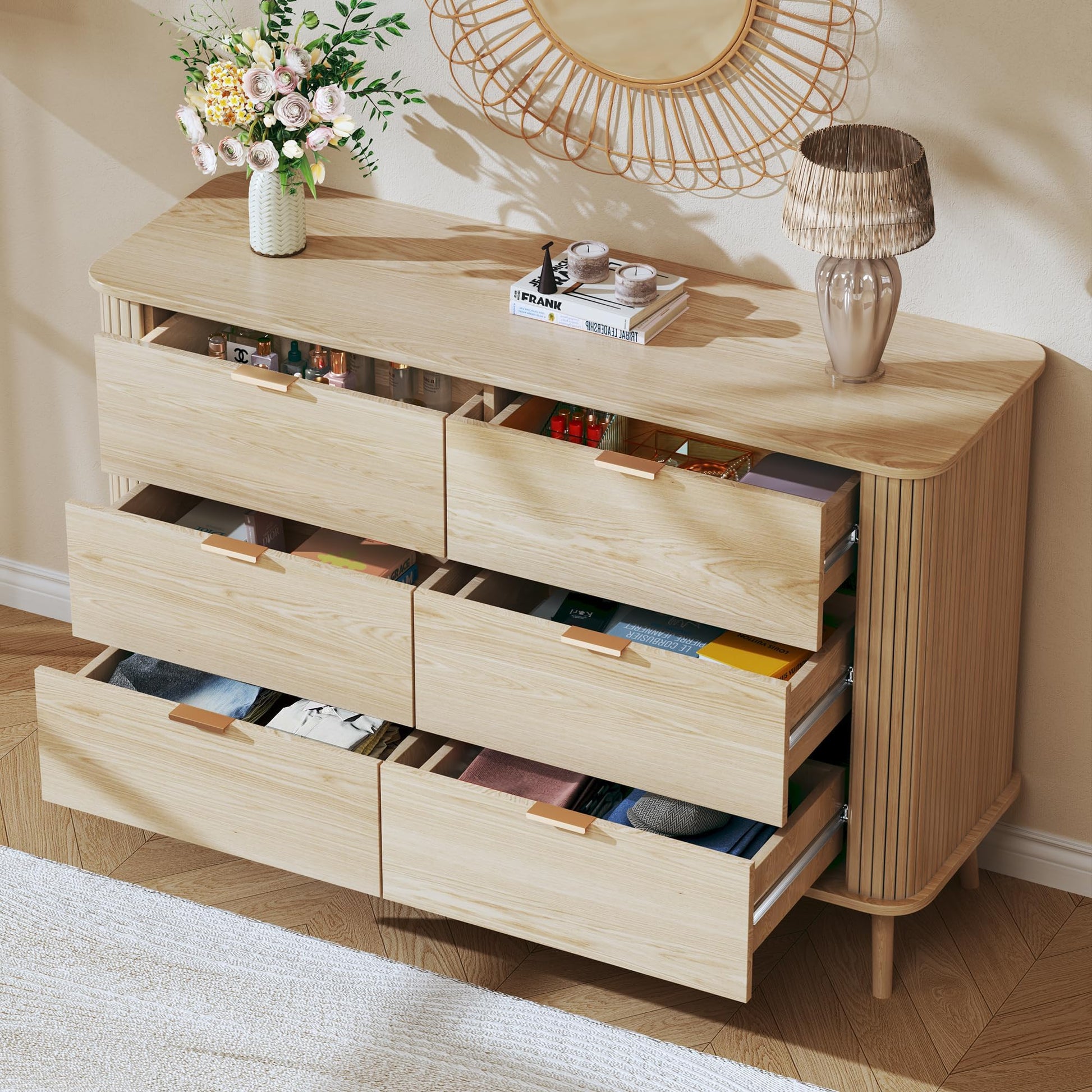 Fluted 6 Drawers Dresser for Bedroom, Mid Century Modern Closet Dresser & Chests of