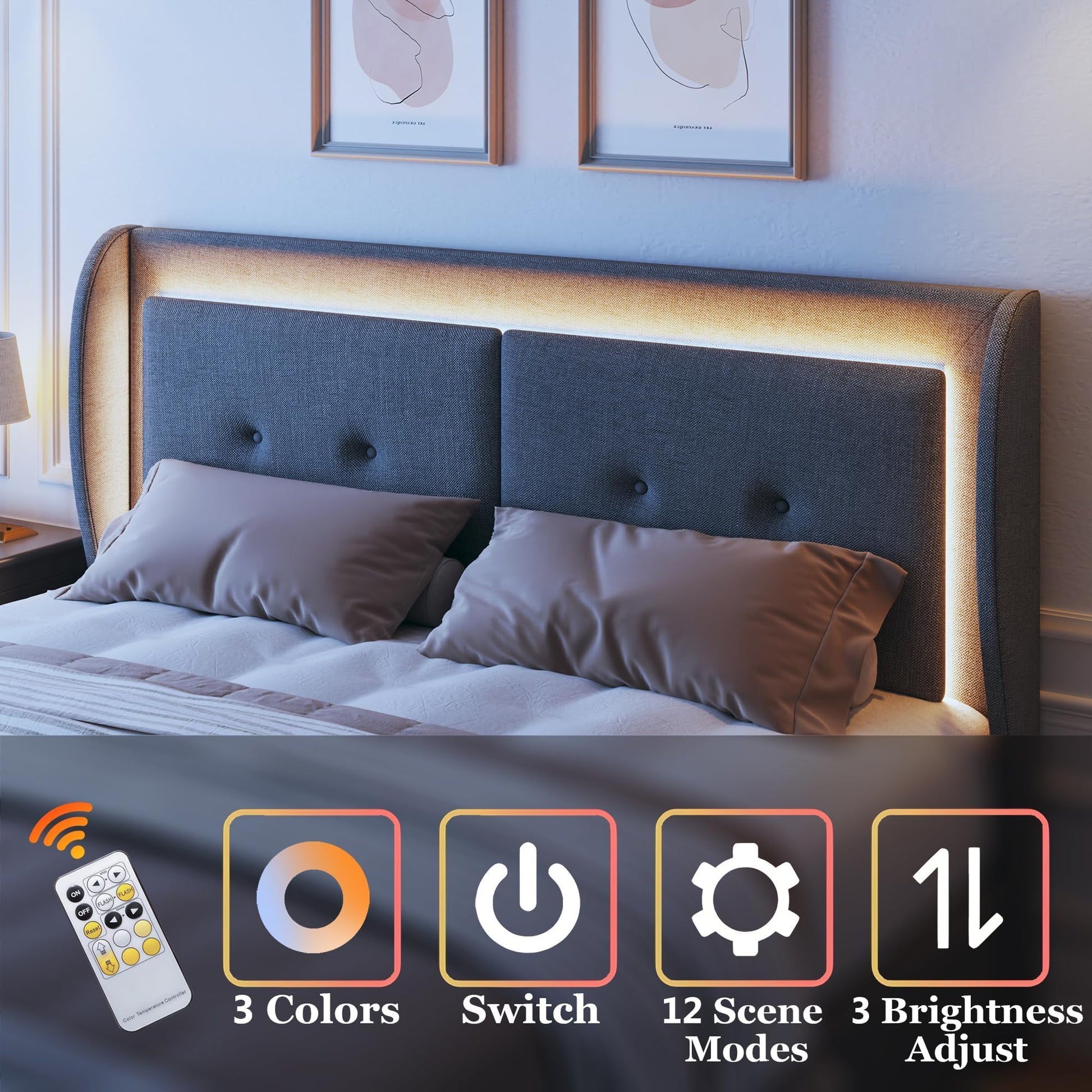 Queen Bed Frame with Storage Drawers, Upholstered LED Bed Frame Queen Size