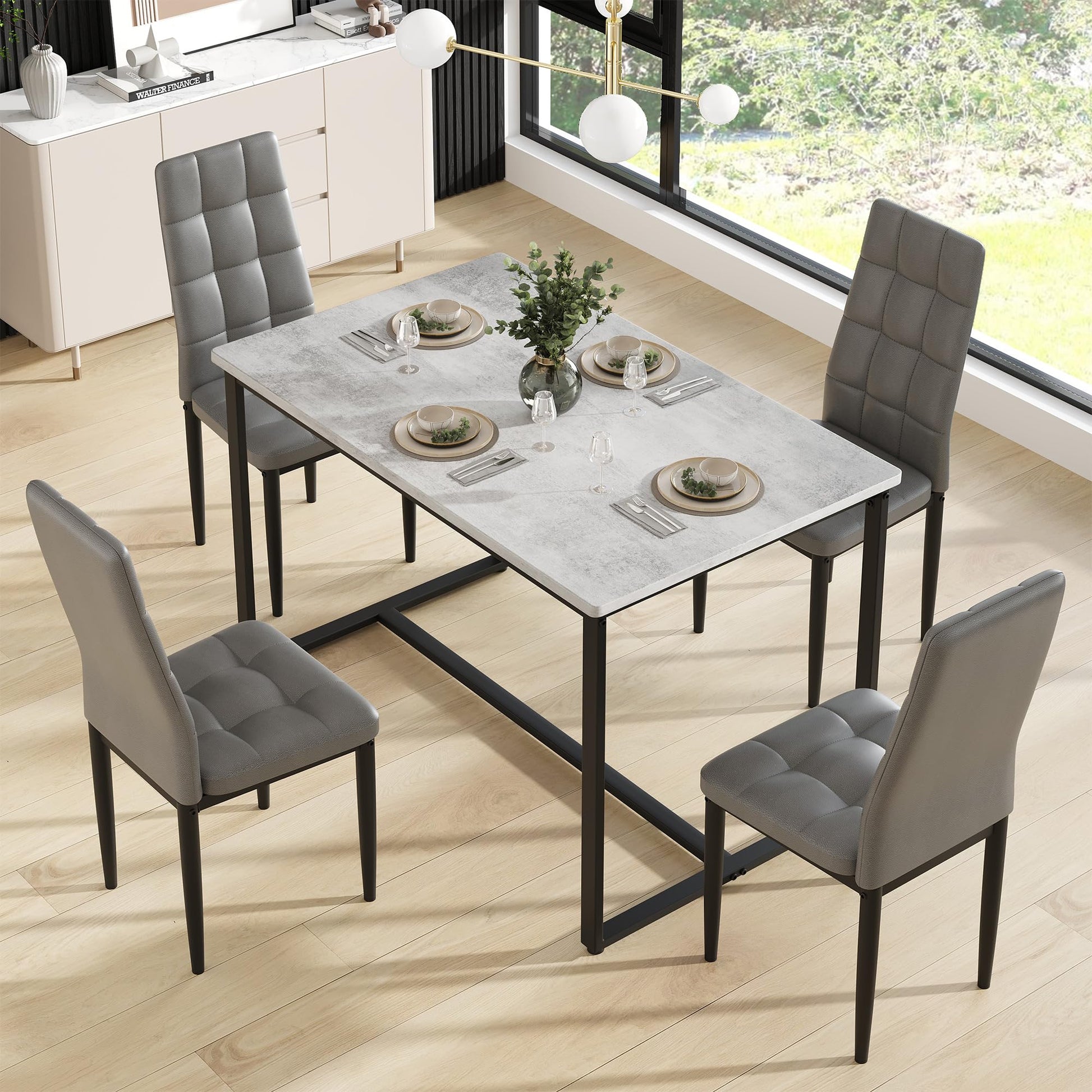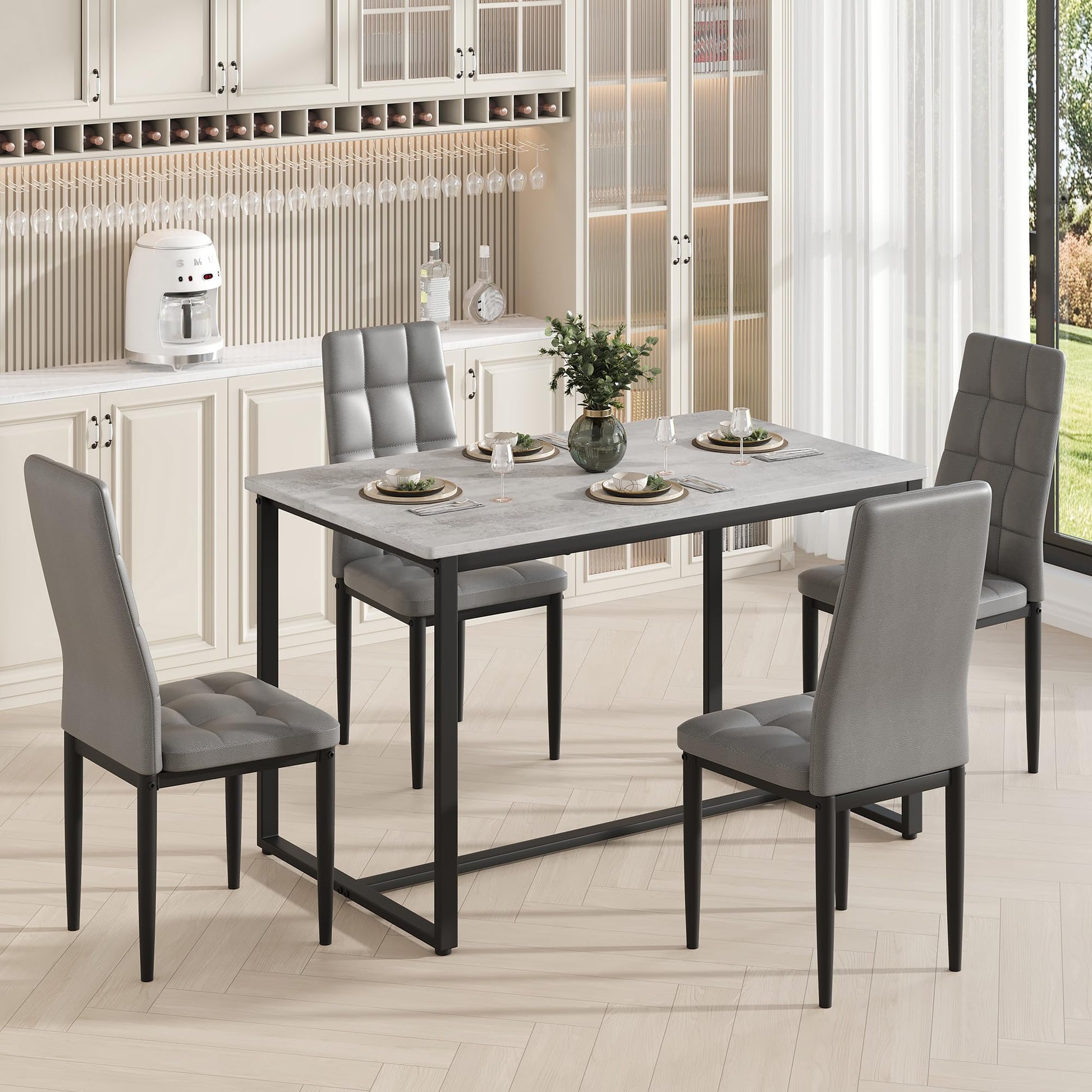 - MODERN VERSATILE STYLE: This 4-person dining table set (47.24 inches x 27.56 inches) comes with high-back leather-upholstered chairs featuring deep gray seats with black metal legs and a light gray textured tabletop. It's perfect for apartments, kitchens, or cozy dining rooms. The versatile colors and design add a highlight to your interior decor.