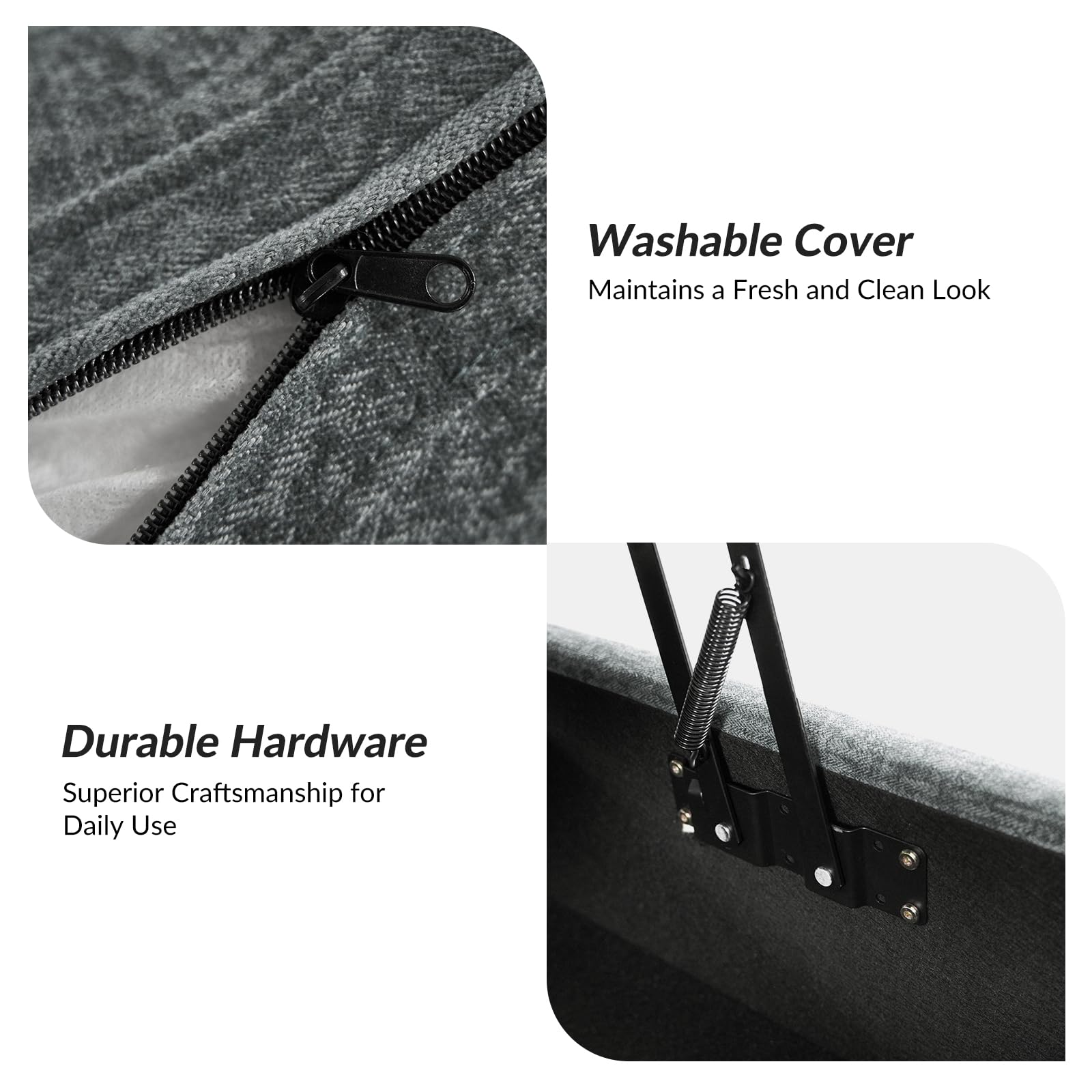 - Liftable Ottoman: This sofa comes with a lift-up ottoman for storage and can also be used as a coffee table with the seat raised for working, playing or eating, which is not only practical but also enhances the style and aesthetics of the interior.