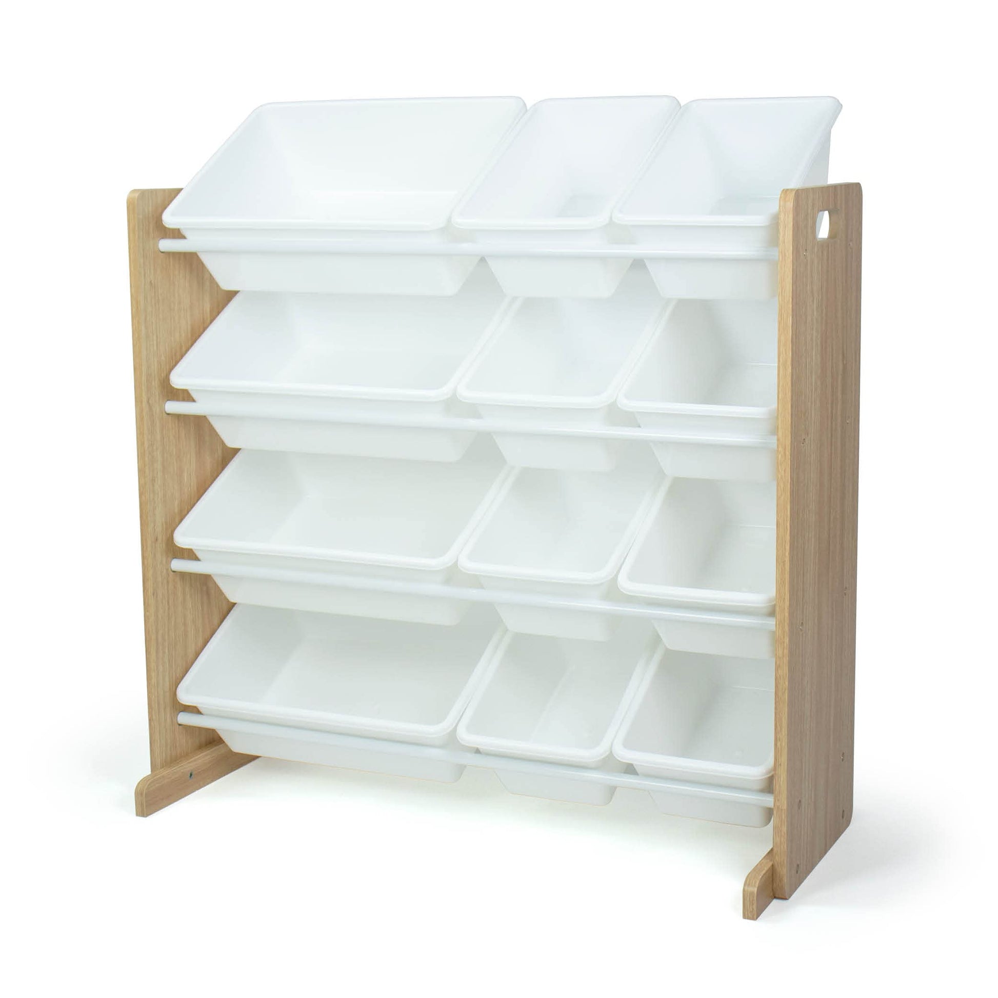 Natural Wood/White Kids Toy Organizer with 12 Storage Bins & 4 tier