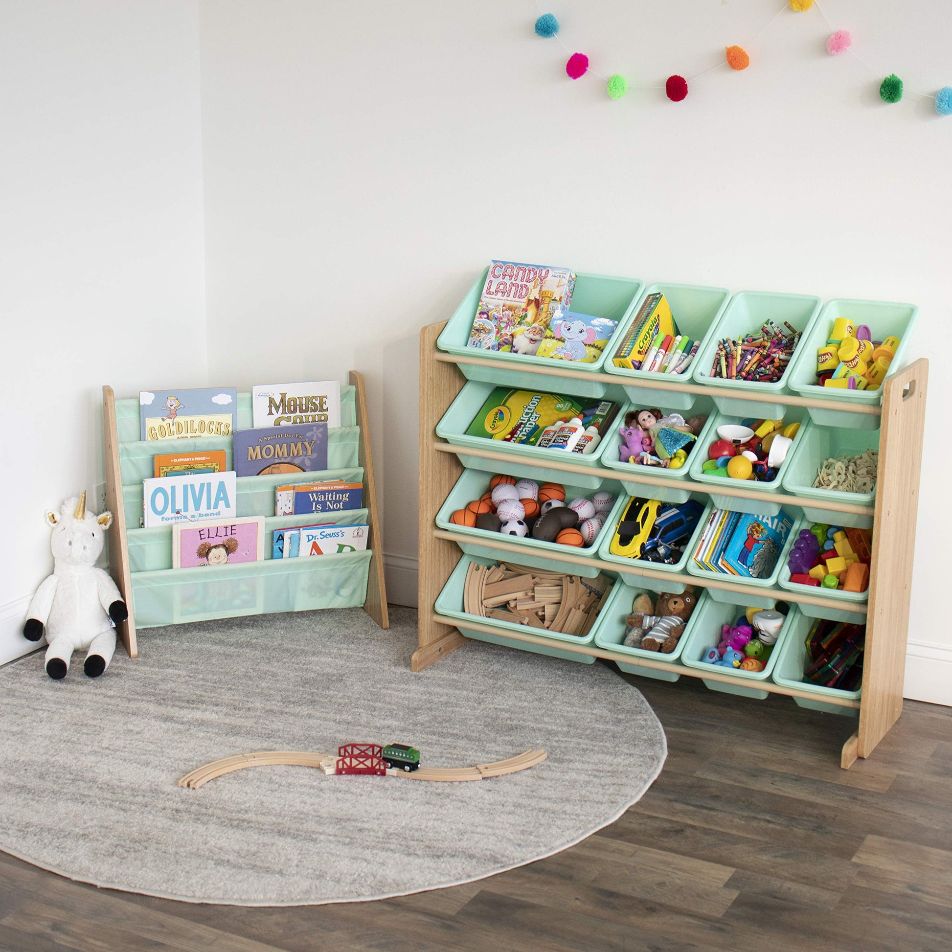 Seafoam Green/Natural Kids Bookshelf 4 Tier Book Organizer
