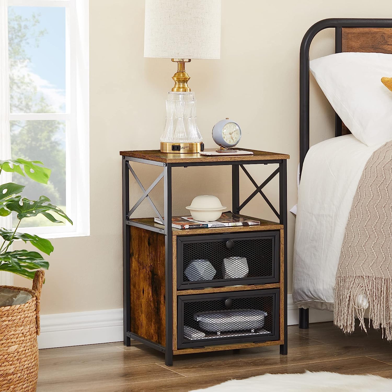 - Carefully crafted with premium MDF material and X-design, this nightstand has a stable structure. The magnet that holds the doors closed is pretty sturdy and there is no wobbling once the nightstand is assembled..Assembly Engineered Wood.Item Dimensions:25.8" L x 13.8" W x 15.7" H