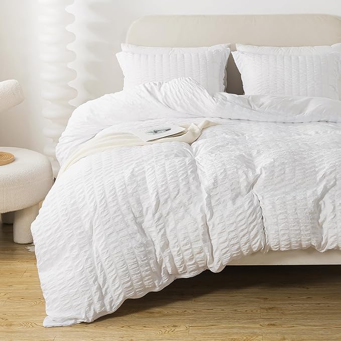 - Unique Seersucker Design: Different from traditional plain duvet covers, our slightly puckered seersucker texture is beautiful and exquisite; creating a vivid 3D wave pattern visual effect; the stripe texture is the highlight of this seersucker fabric design, wrinkle-resistant and easy to care for; this soft seersucker duvet cover adds a unique romantic and elegant touch to your room