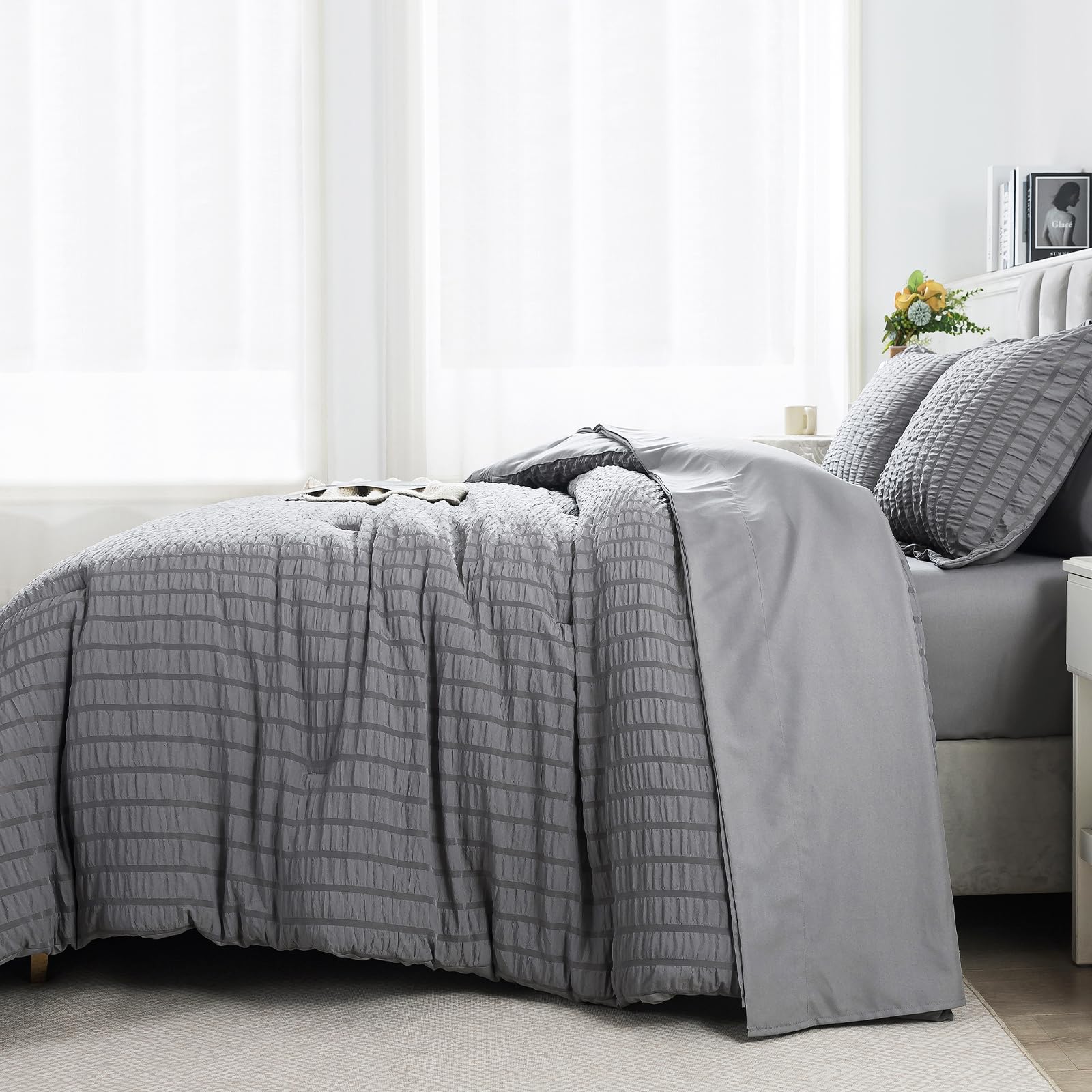 Queen Size Seersucker Comforter Set - 7 Pieces Reversible Comforters Bedding Sets