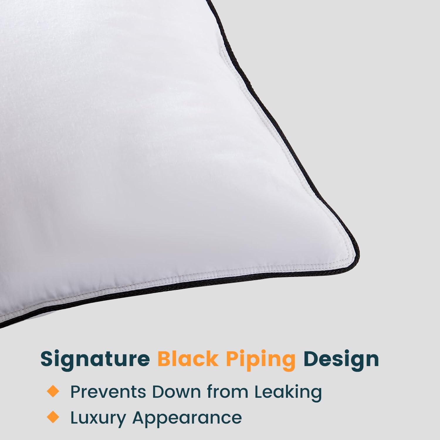 - Our down pillows are Double-stitched and expertly tailored, and offer signature black piping ensuring both a luxurious appearance and preventing any down from escaping. A great gift choice for family and friends.