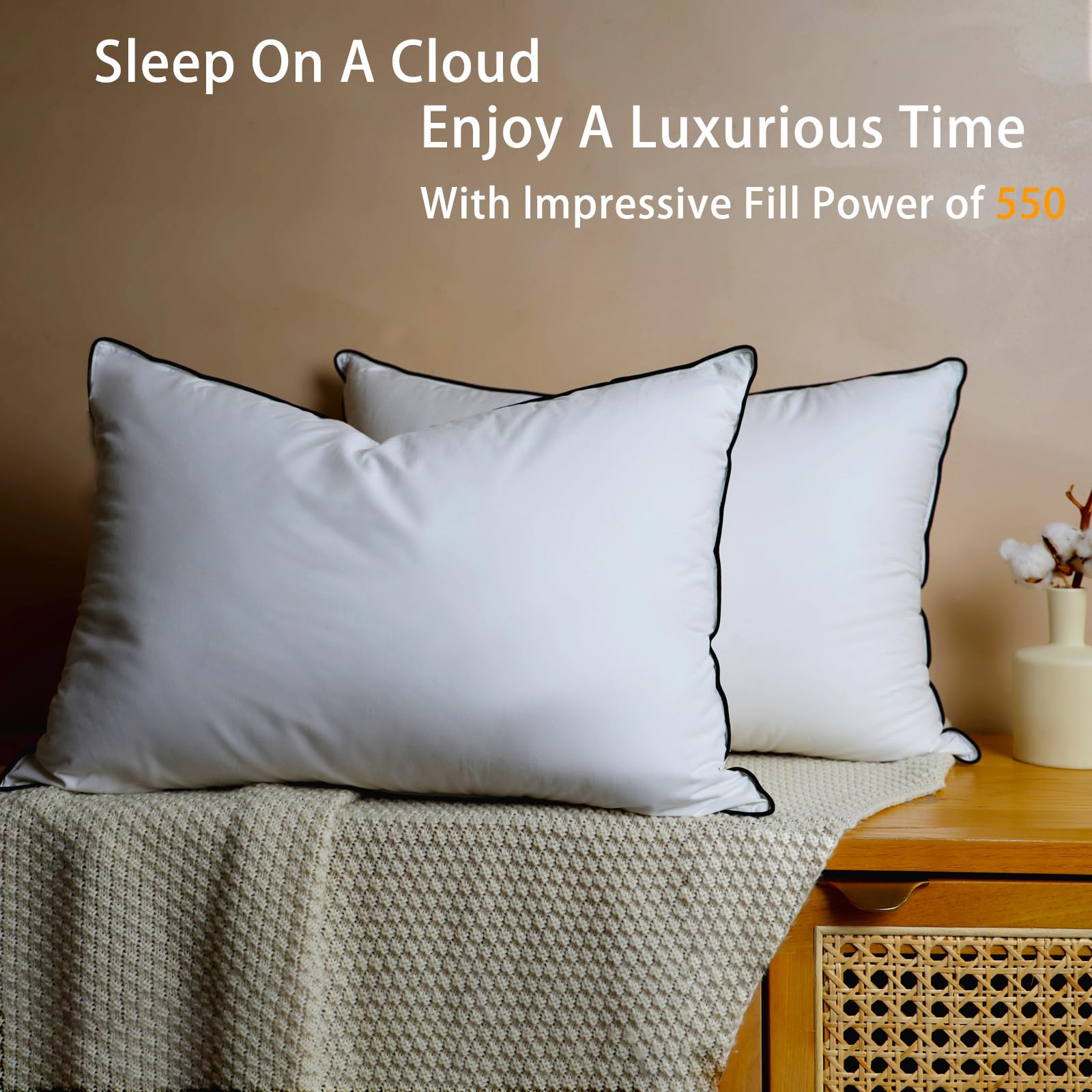 - Our down pillows are filled with premium 550-fill power Hungarian white down for luxurious comfort and fluffy.