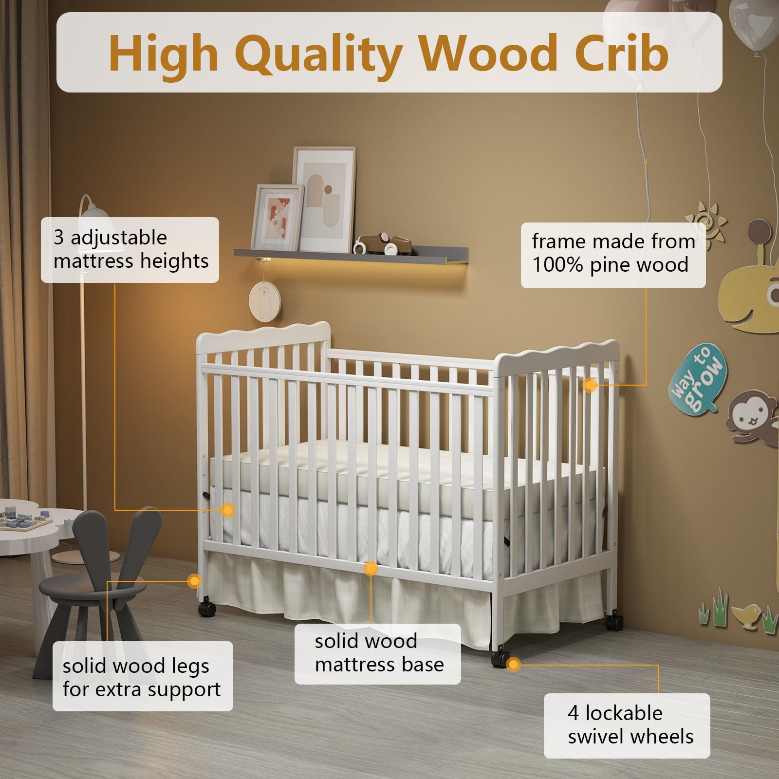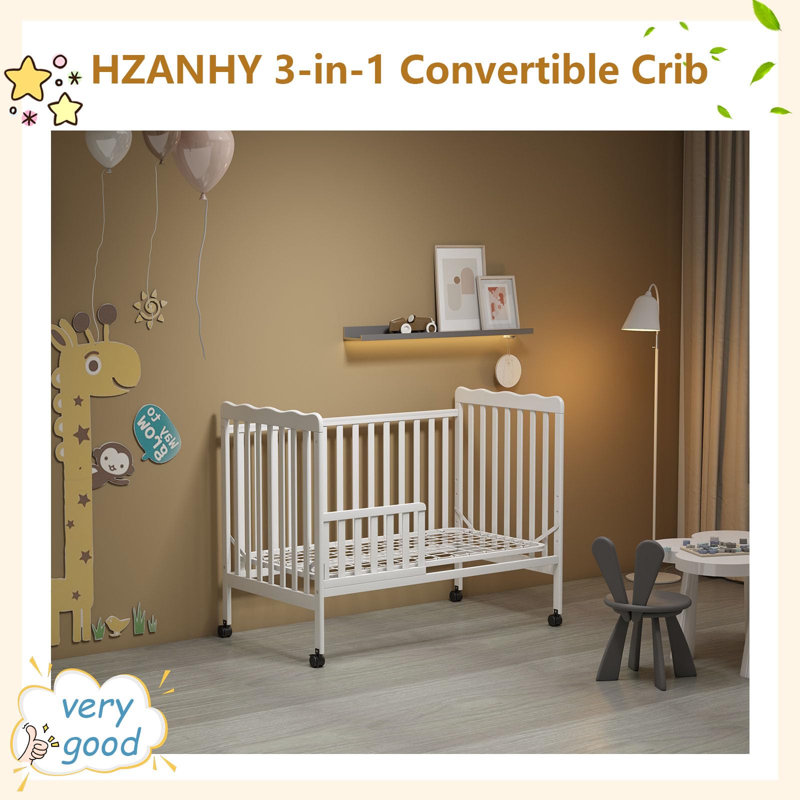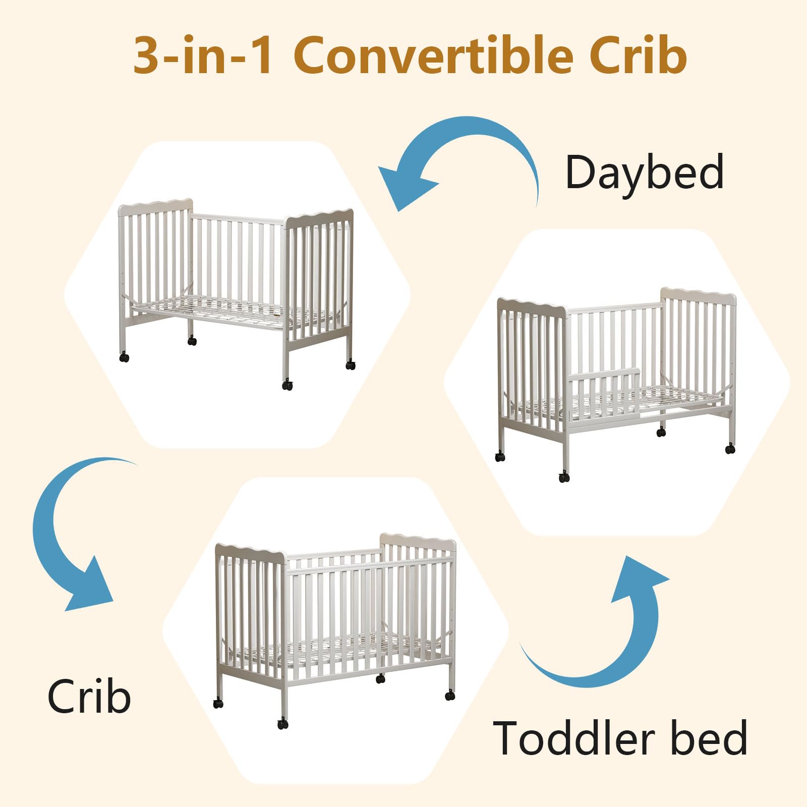 - 3-in-1 Convertible Wonder: Transform this crib into a toddler bed, daybed (Full-size Bed Frame and Mattress not included ). This versatile piece adapts effortlessly to your baby's development stages.
