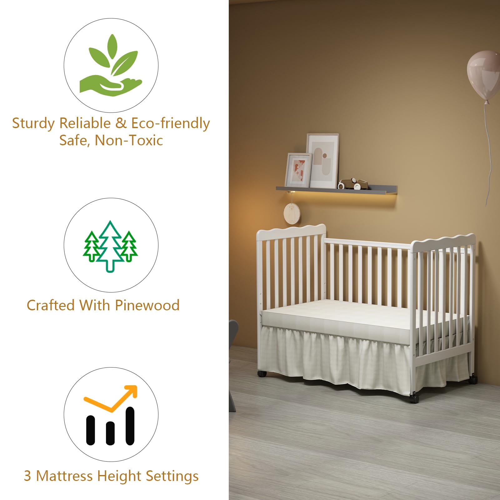- Practical Storage & Enhanced Versatility: A 3-in-1 convertible storage crib that not only serves as a baby crib. It can convert to a toddler bed, daybed, it offers four mattress height options, including a unique "newborn" height option, providing easier access for parents.