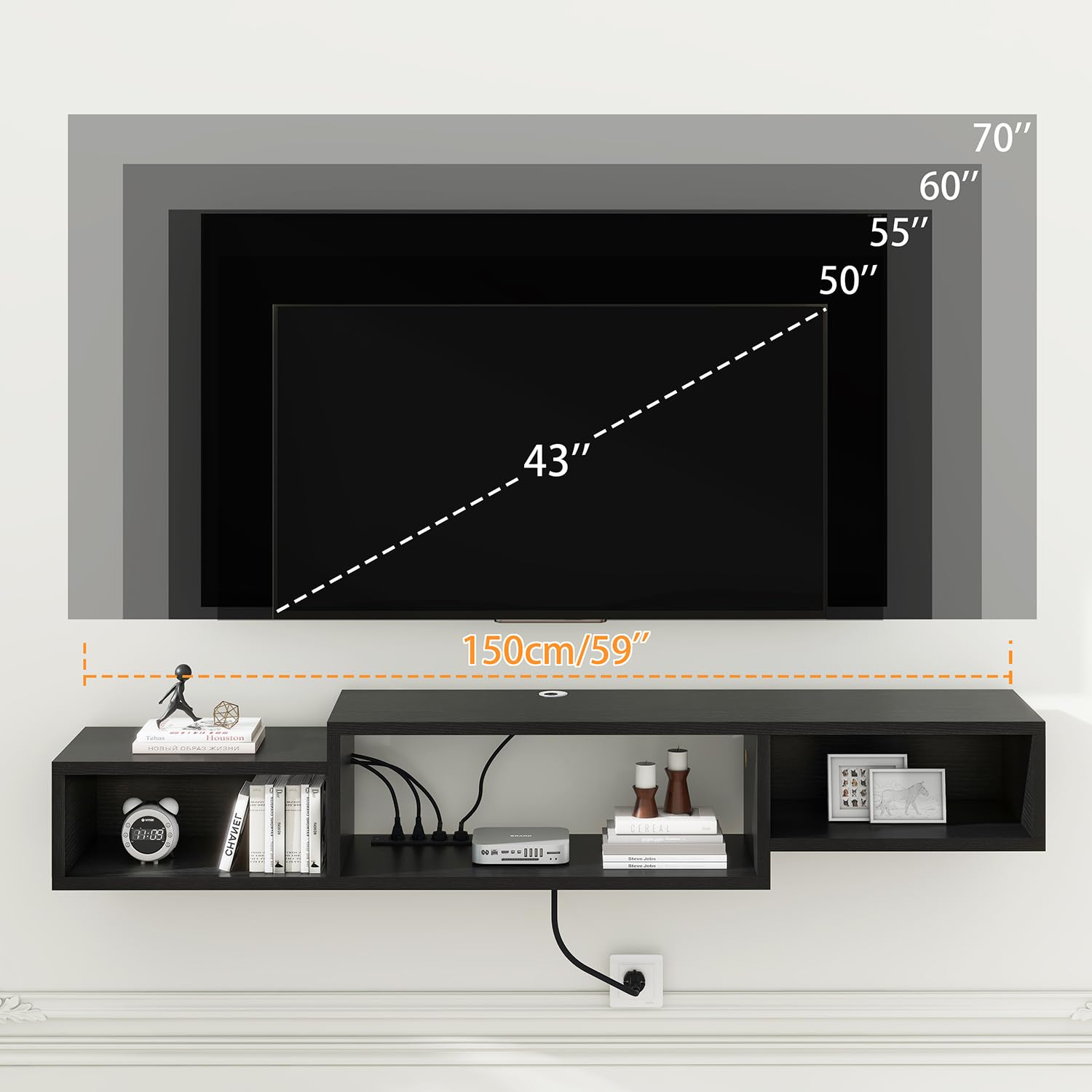 59" Floating TV Stand Wall Mounted with Power Outlet,Wood Wall Mounted Media