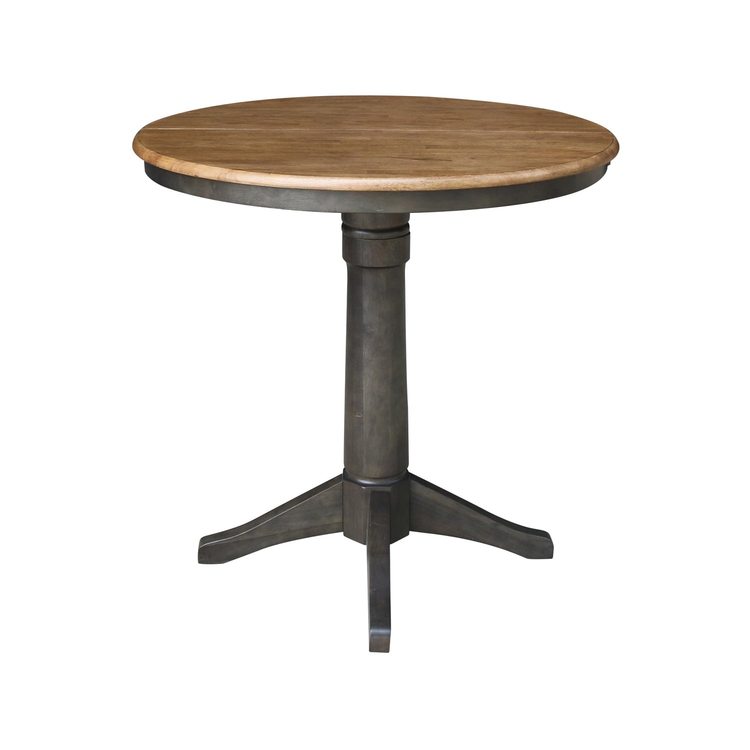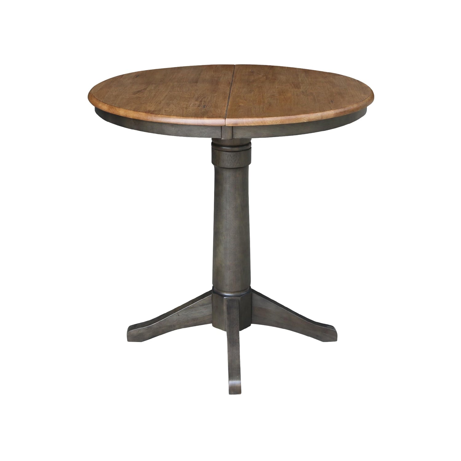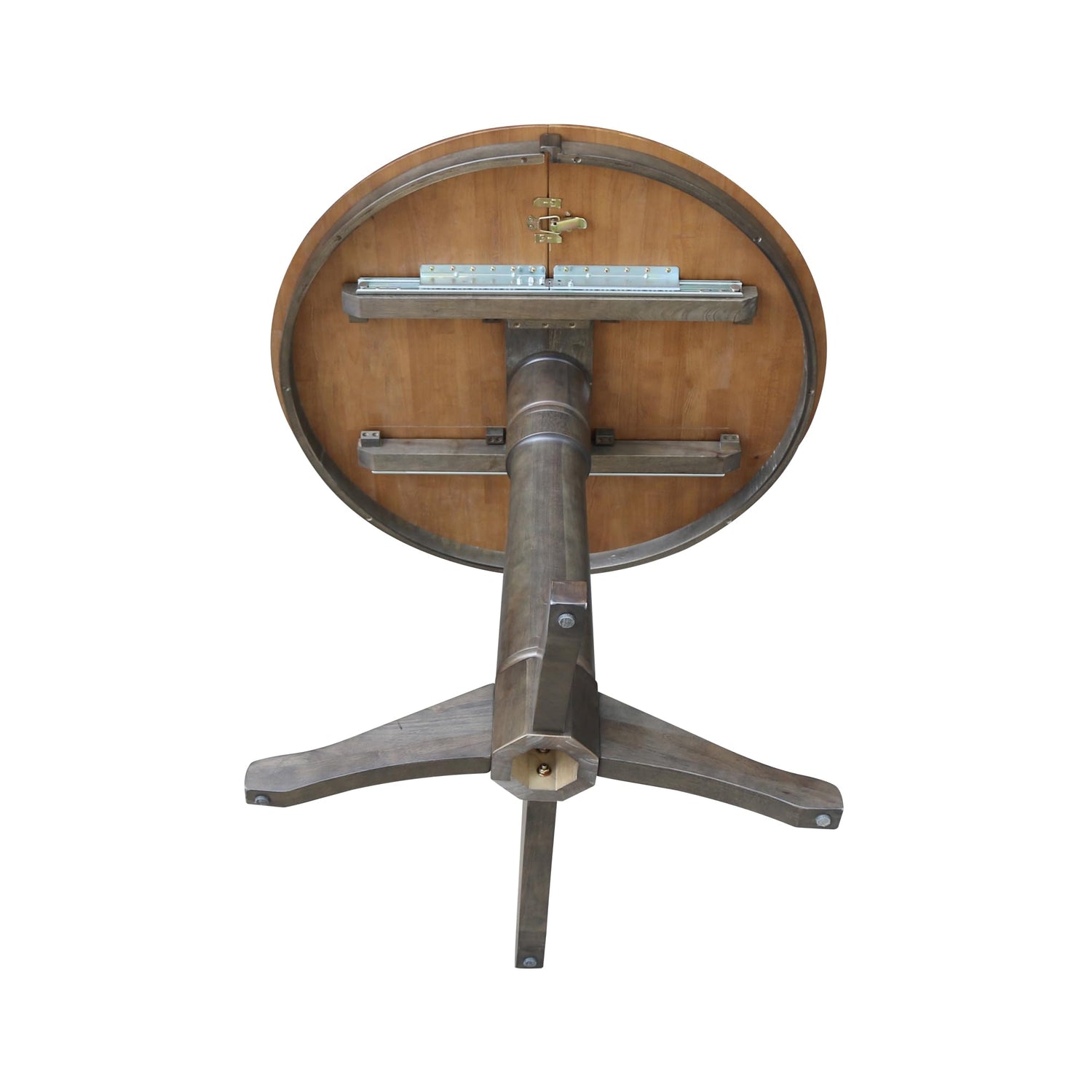 IC International Concepts 36" Round Top Pedestal 12" Leaf-36.1" H-Counter Height Dining table, Hickory/Washed coal