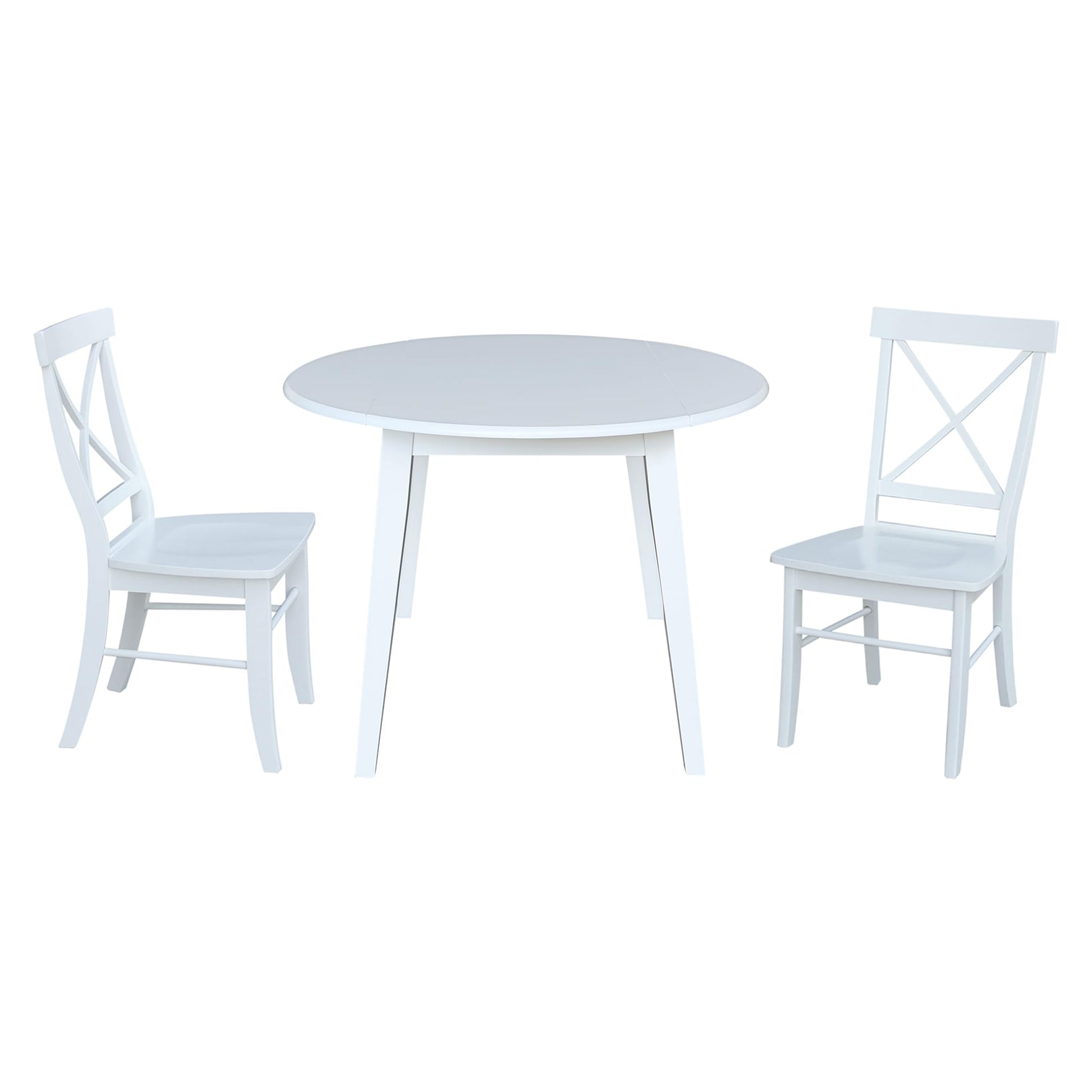 42" Solid Wood Round Dual Drop Leaf Dining Table with 2 Chairs in White