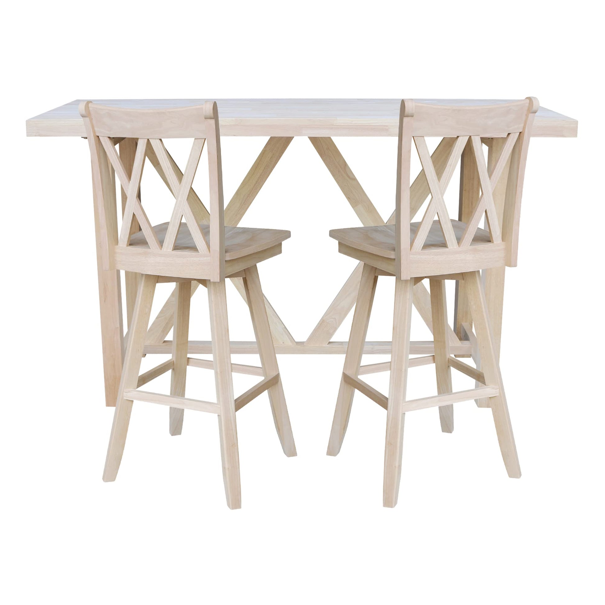 Bar Height Table with 2 Double Cross Back Swivel Bar Stools - 30 in. Seat Height