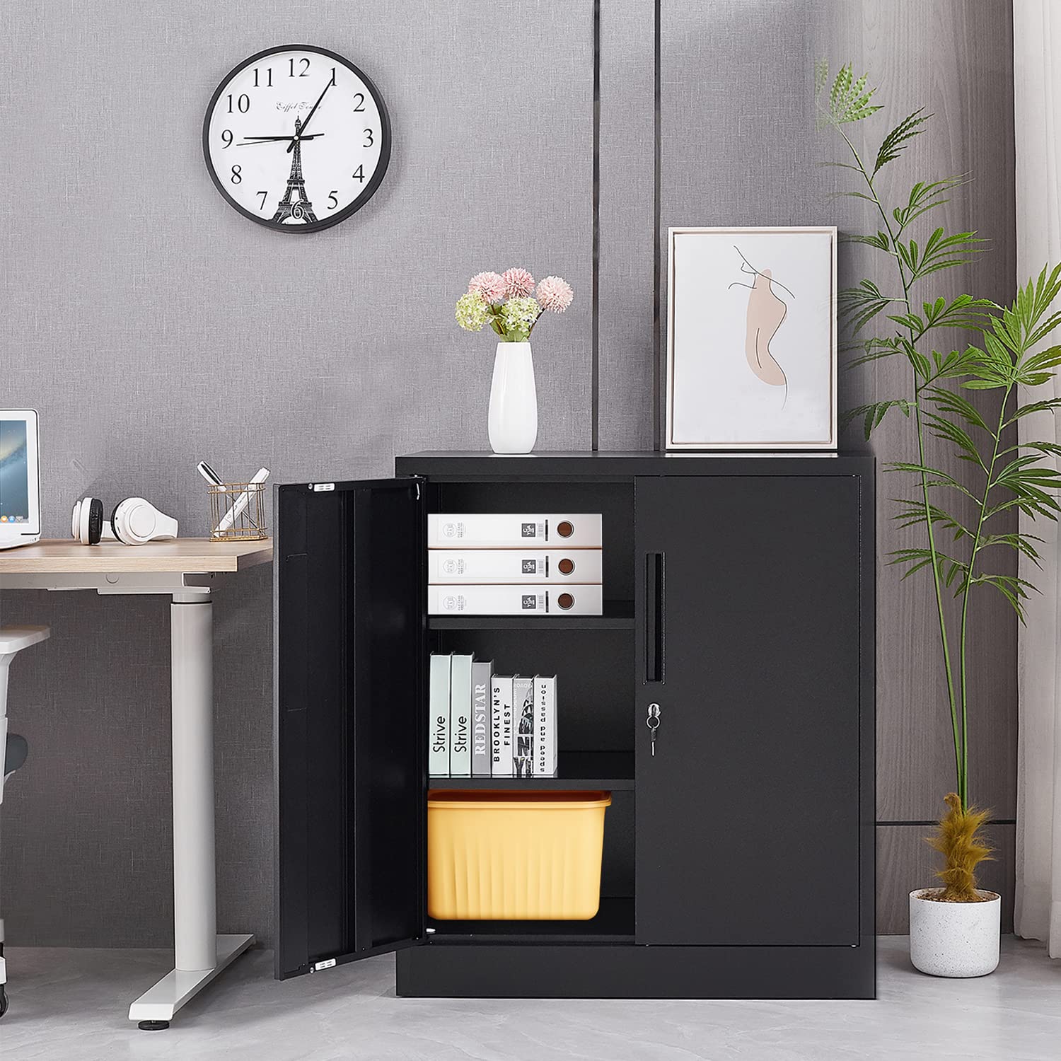 - - This small metal cabinet has 2 adjustable shelves which can be moved up or down, so you can storage your tools, files, books, office supplies and cleaning supplies by maximize space utilization.