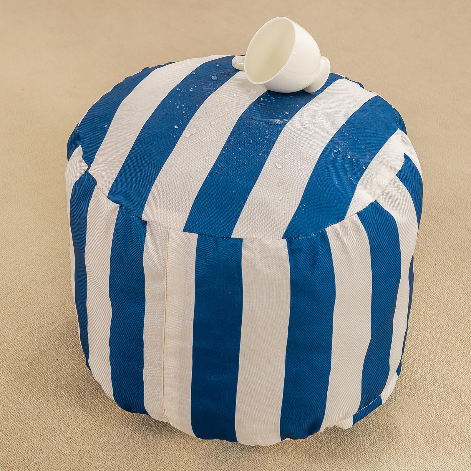 Waterproof Round Stuffed Pouf Ottoman, Indoor Outdoor Pouf Foot Stool Storage Ottoman