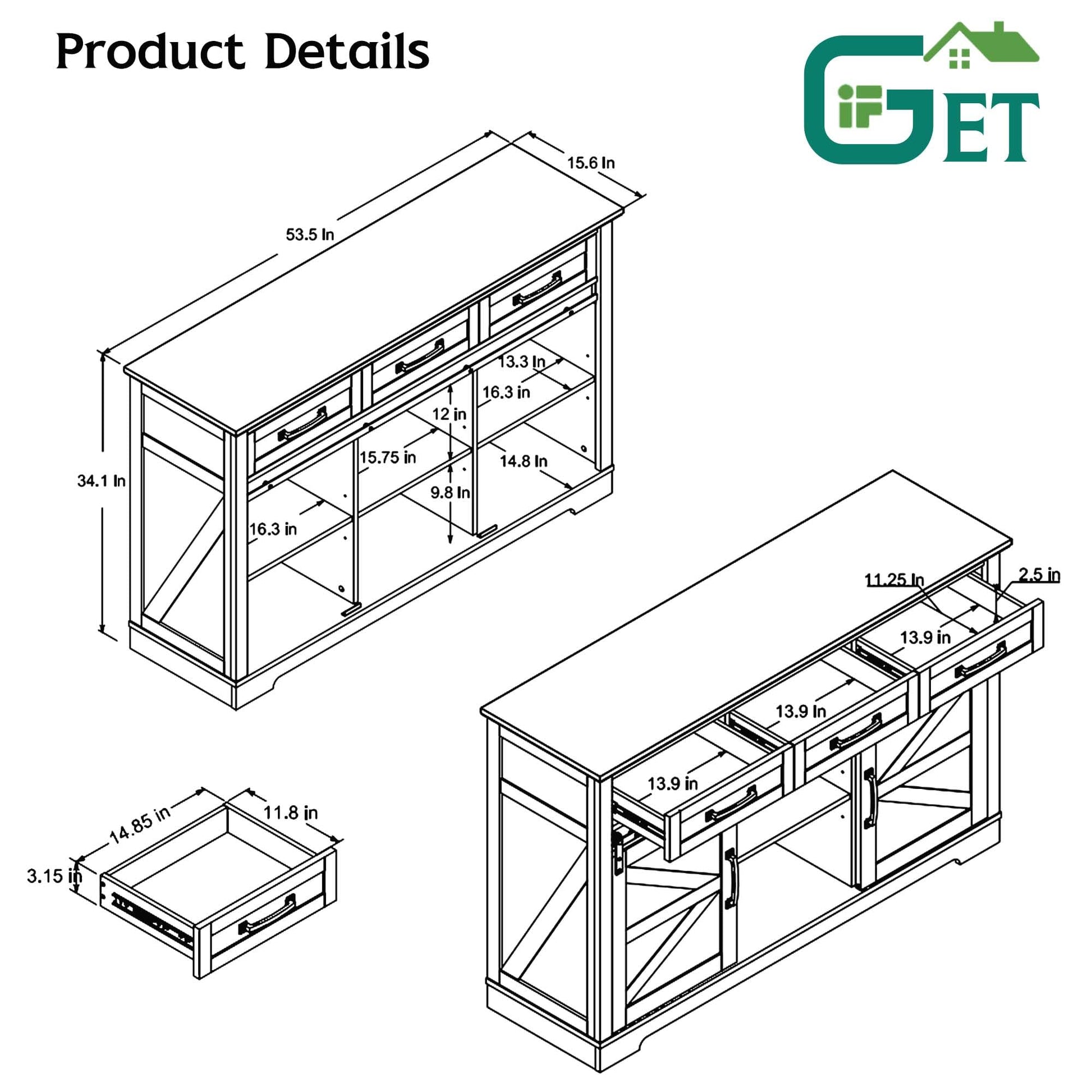 Farmhouse Buffet Cabinet, 53” Sideboard Cabinet w/3 Drawer, Rustic Storage Cabinet