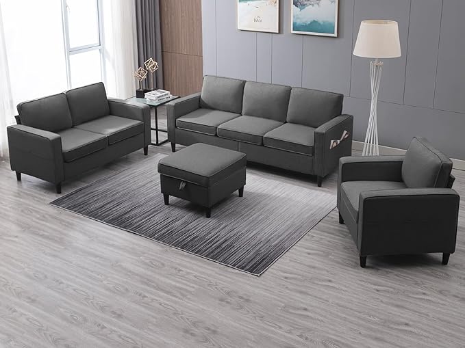 - ✔[Easy to Assemble & Packaging] You will receive 3 packages. They may not arrive on the same day. This couch set for living room requires you to assemble. According to enclosed instructions, you can easily complete the assembly. It is easy to clean and maintain, just use mild detergent and a damp cloth for local cleaning.