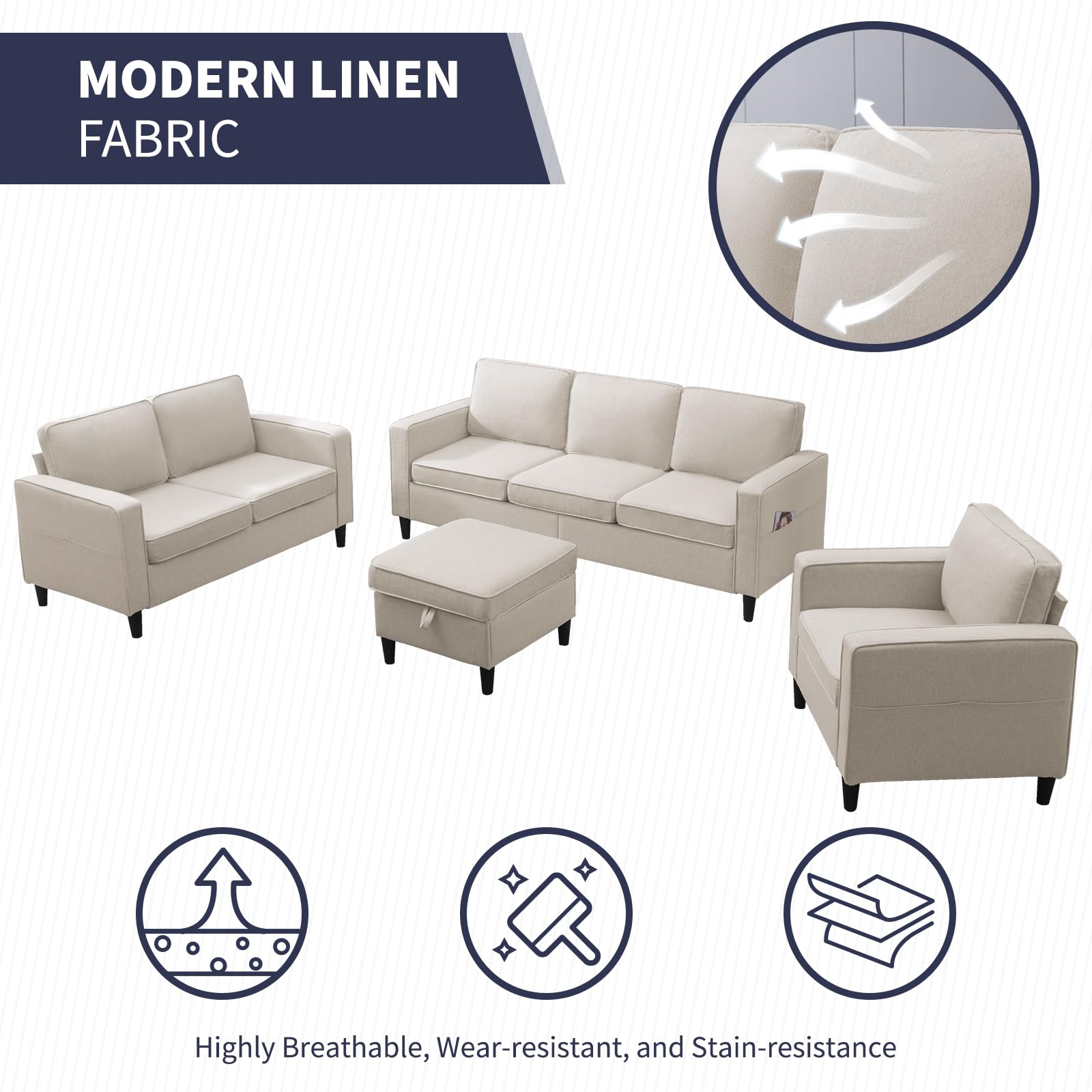 - [Well-selected Premium Material] The sectional sofa set cushions are fully filled with high-quality sponge and upgraded spring pack, providing comfortable using experience. The surface of the comfy couch is made of breathable linen fabric, which is durable and comfortable after prolonged use. The solid wood legs of the sectional couch provides good support and can hold up to 330lbs.