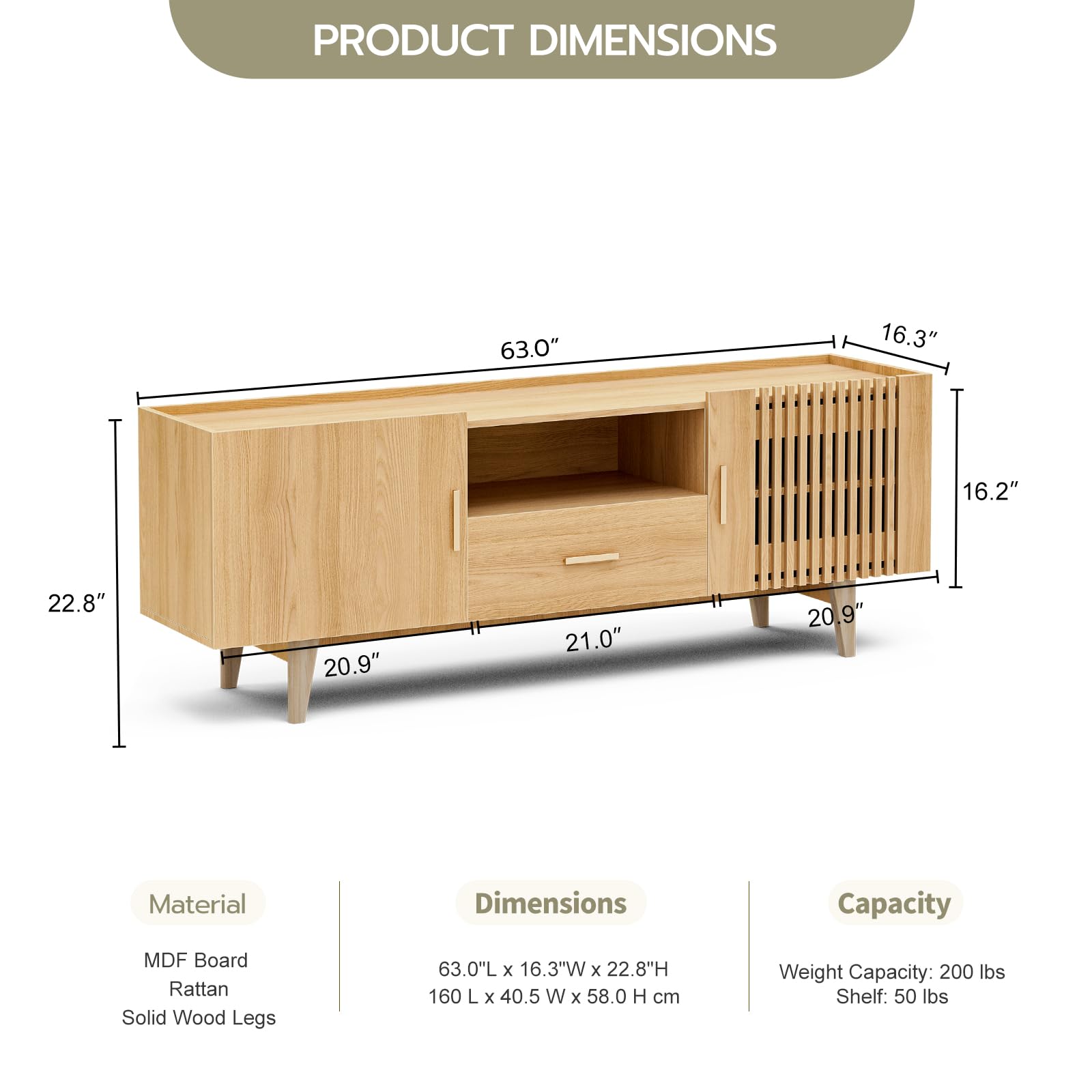 - Modern TV Stand 75 inch TV Table This Entertainment Stand is designed with dimension of 63" L x 16.3" W x 22.8" H, perfect to support 55"-75"TVs, which means the TV & media furniture game console cabinet is designed for your home decor/office/bedroom/living room.