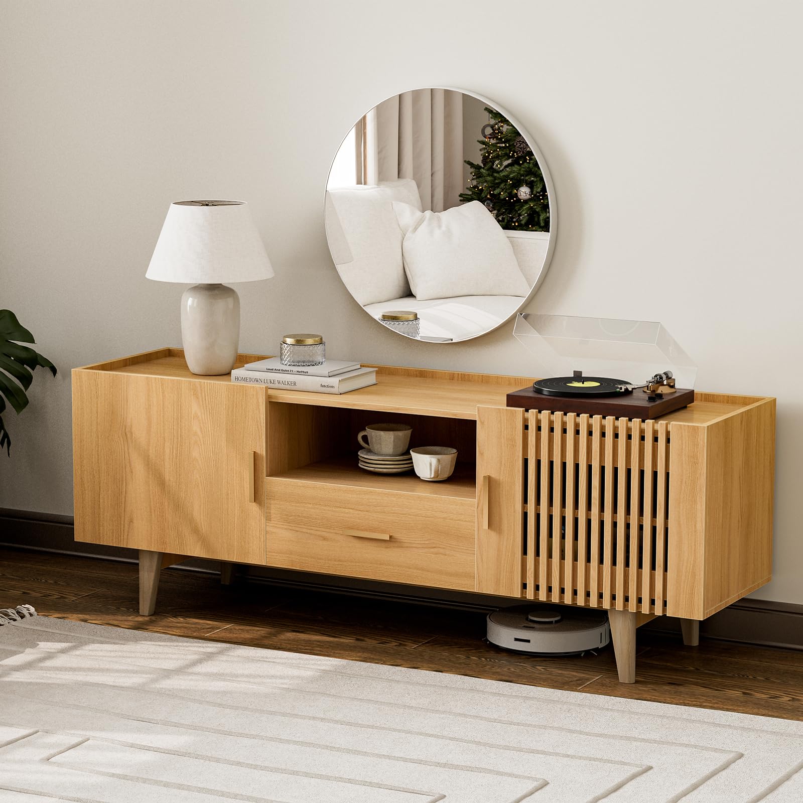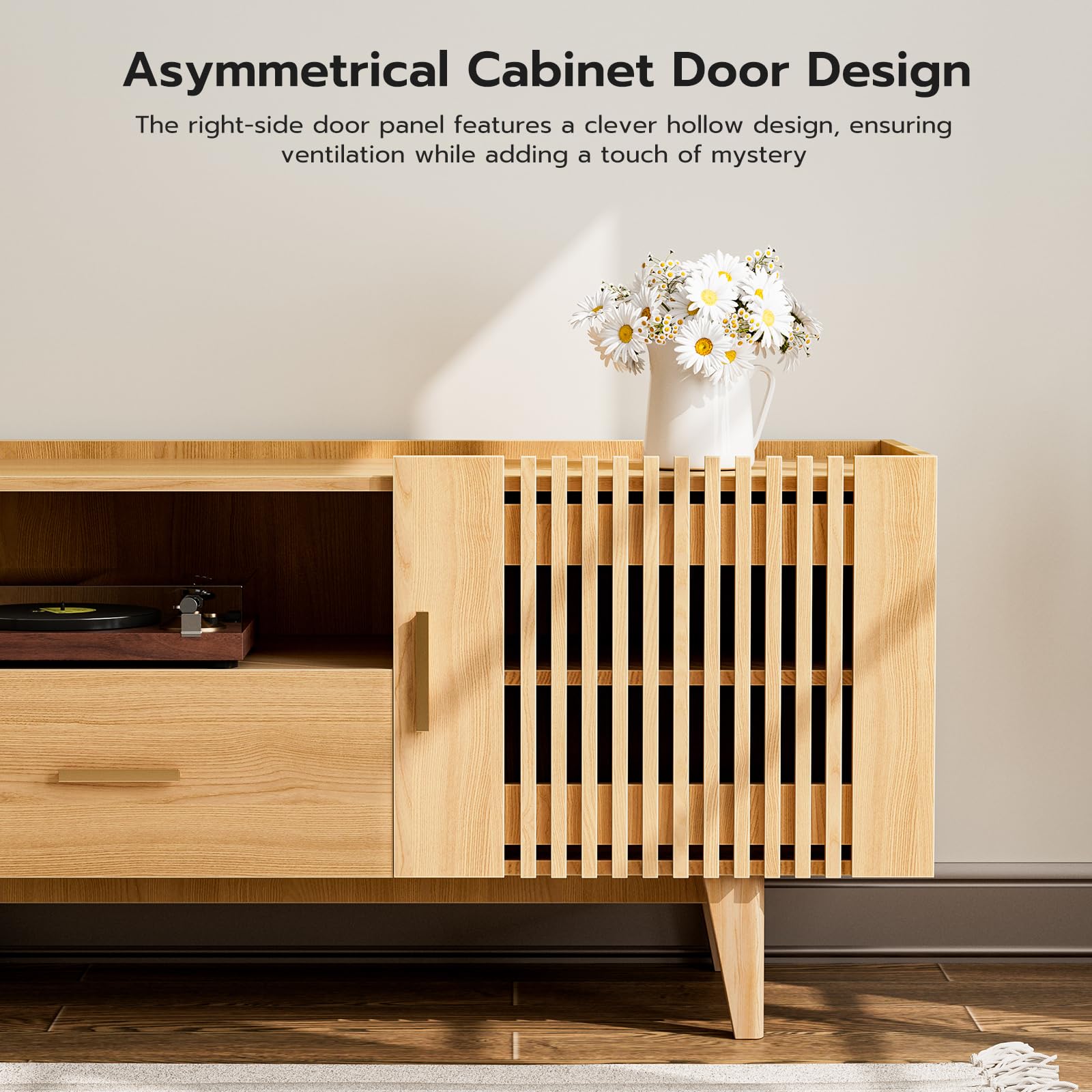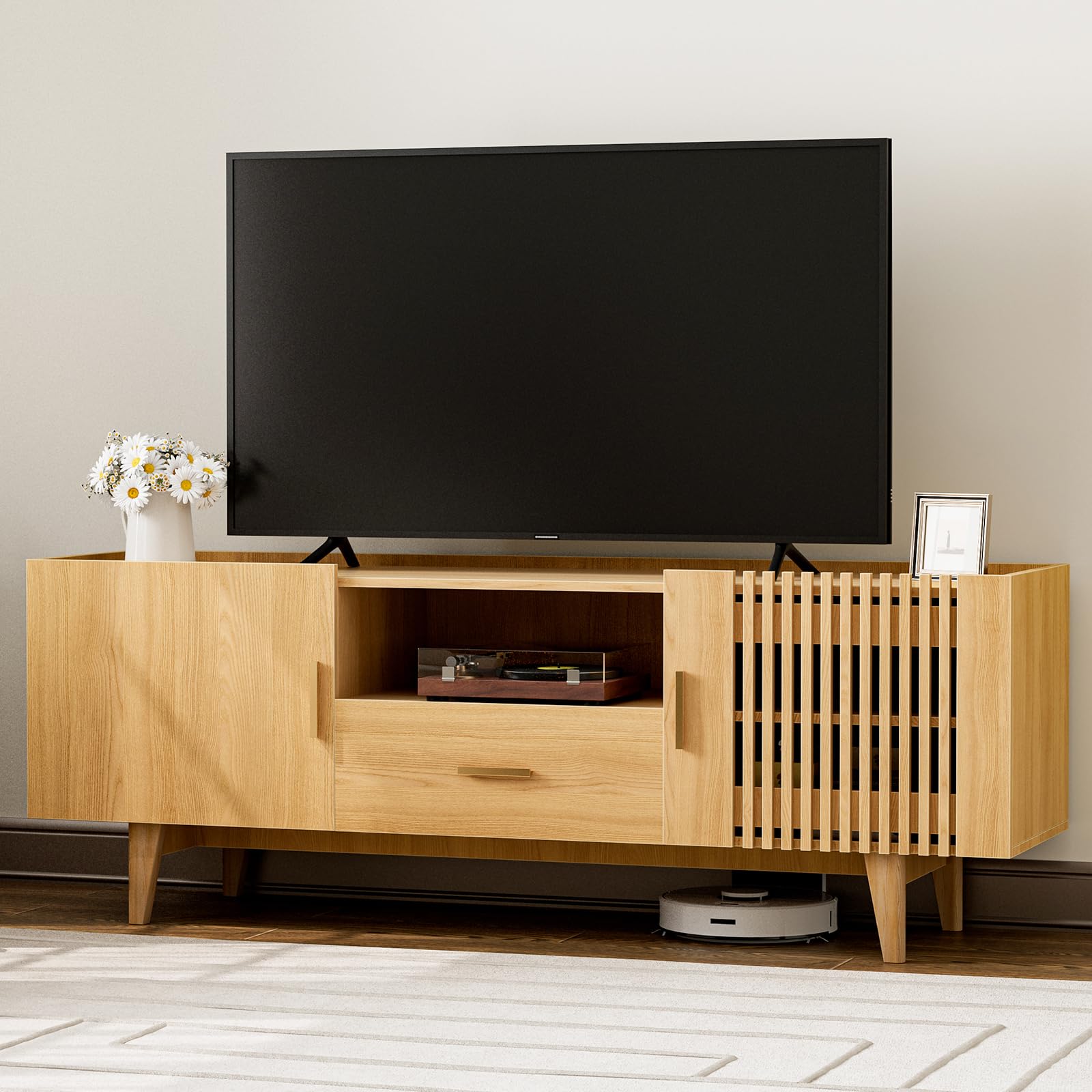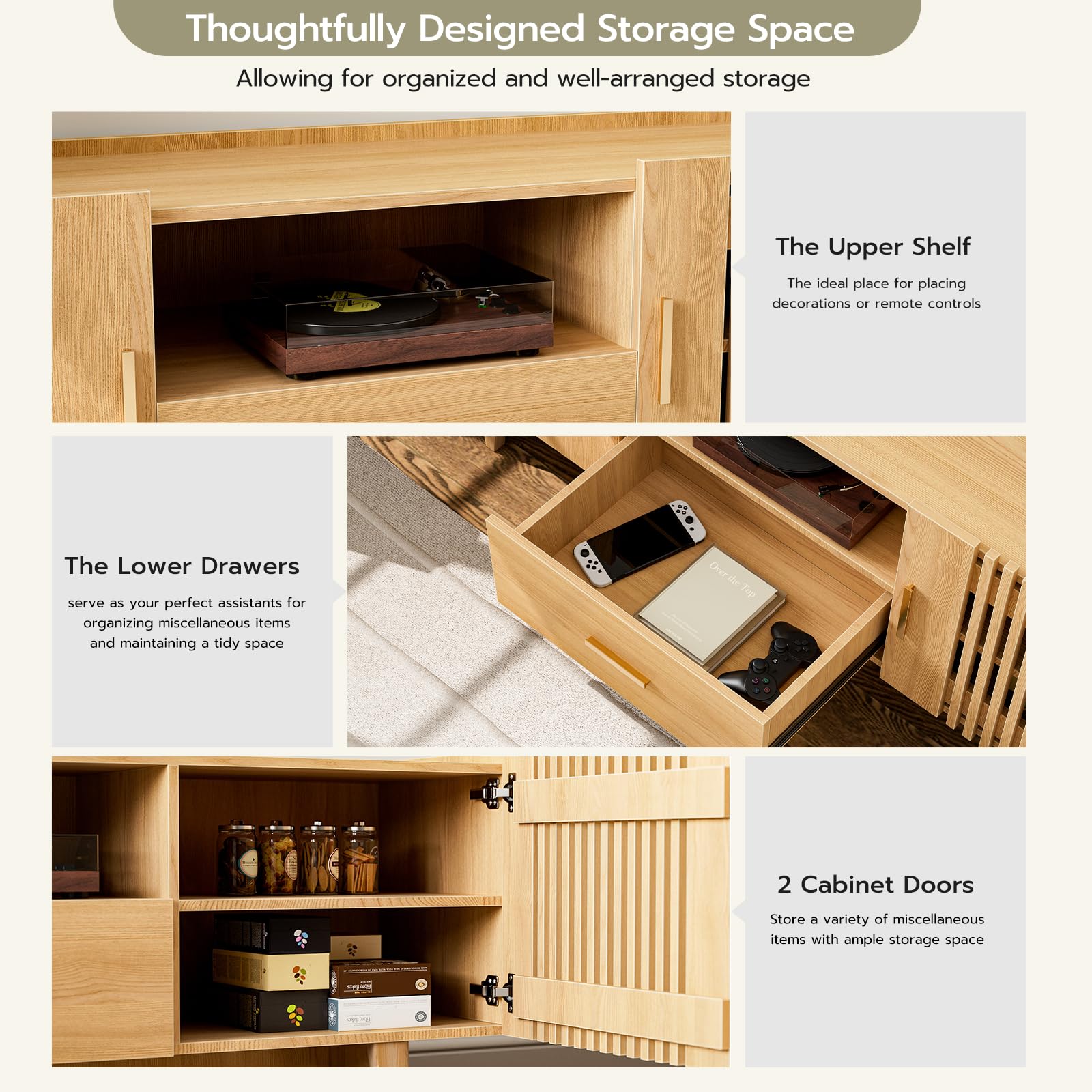 Fluted TV Stand for 75 Inch TV, Modern TV Stand for Bedroom, Mid Century Modern Media