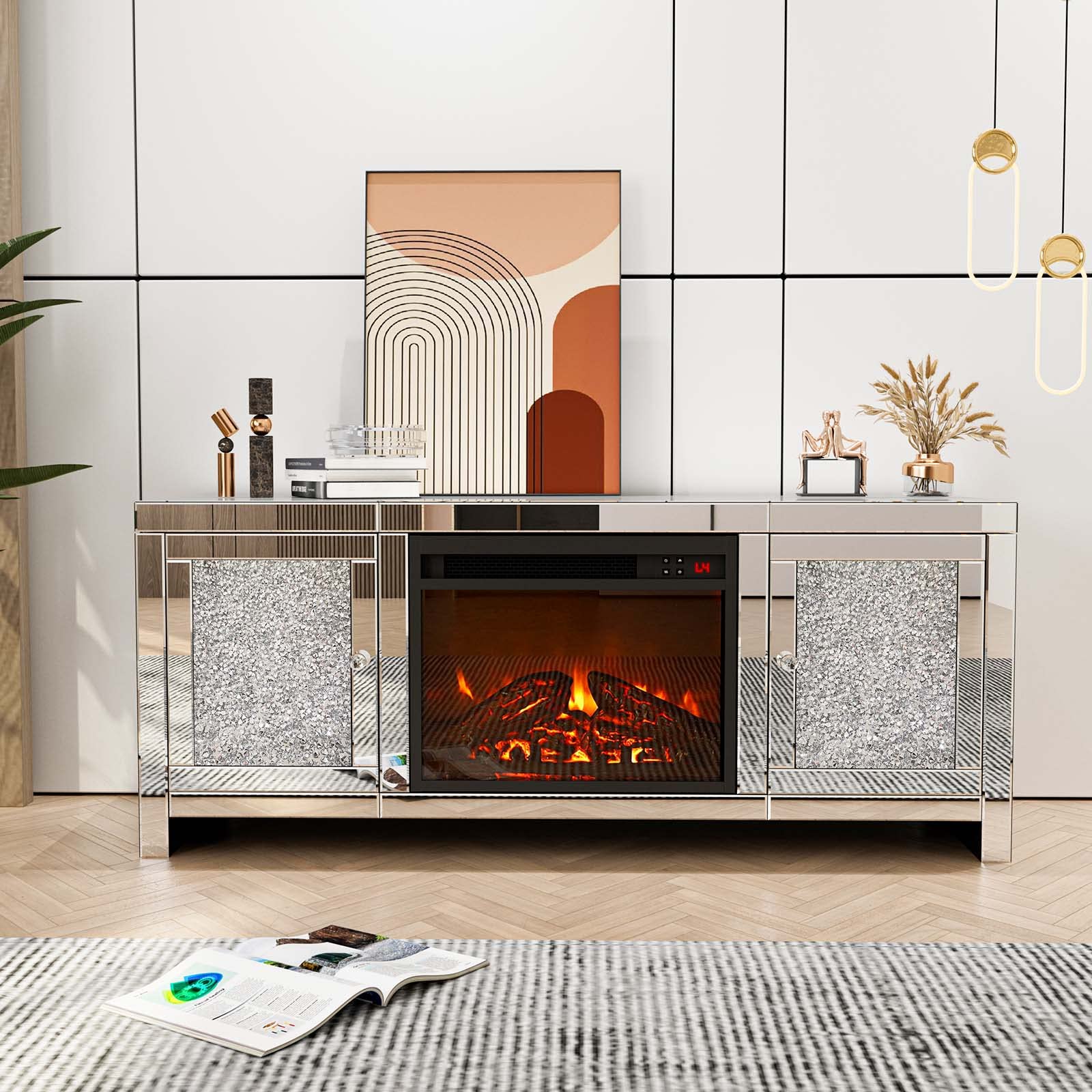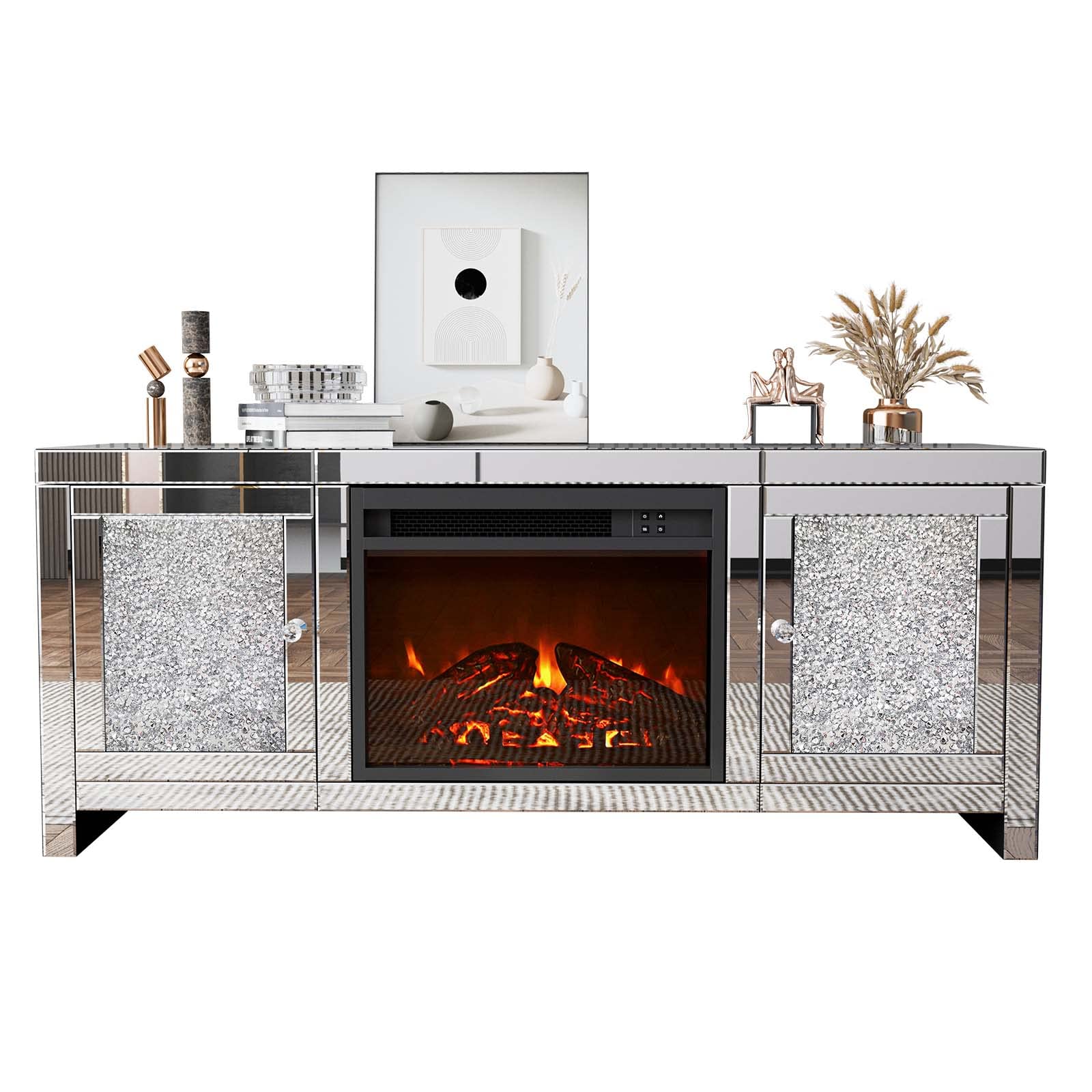 Mirrored Fireplace TV Stand, Mirrored Media Entertainment Center for TV up to 55 inch