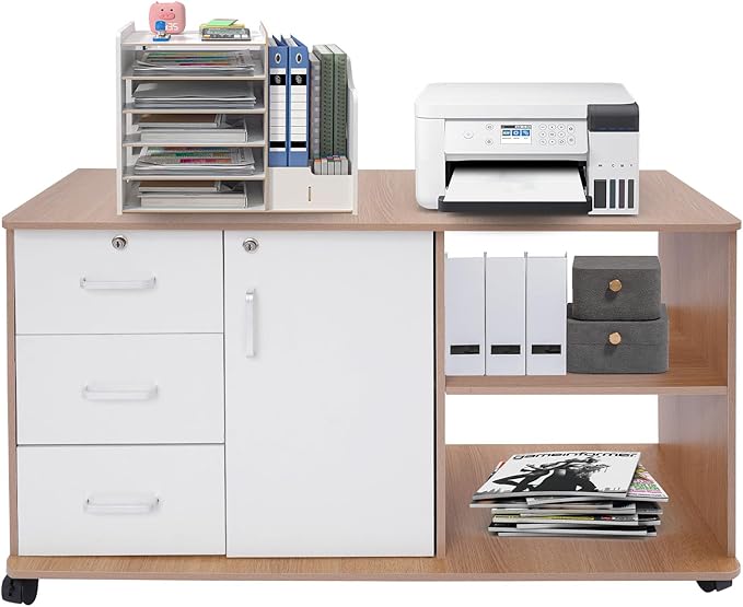 - [Large Storage Capacity] This great capacity file cabinet is designed with a combination structure of 3 drawers, 1 door and 2 compartments, which can fully accommodate all kinds of documents and printers, fully meet your office needs.