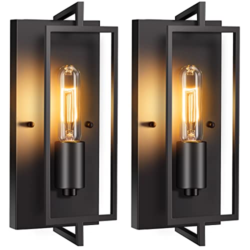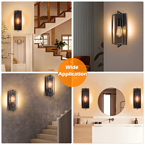 Industrial Black Wall Sconces, Vintage Farmhouse Wall Sconces Lighting Set of 2