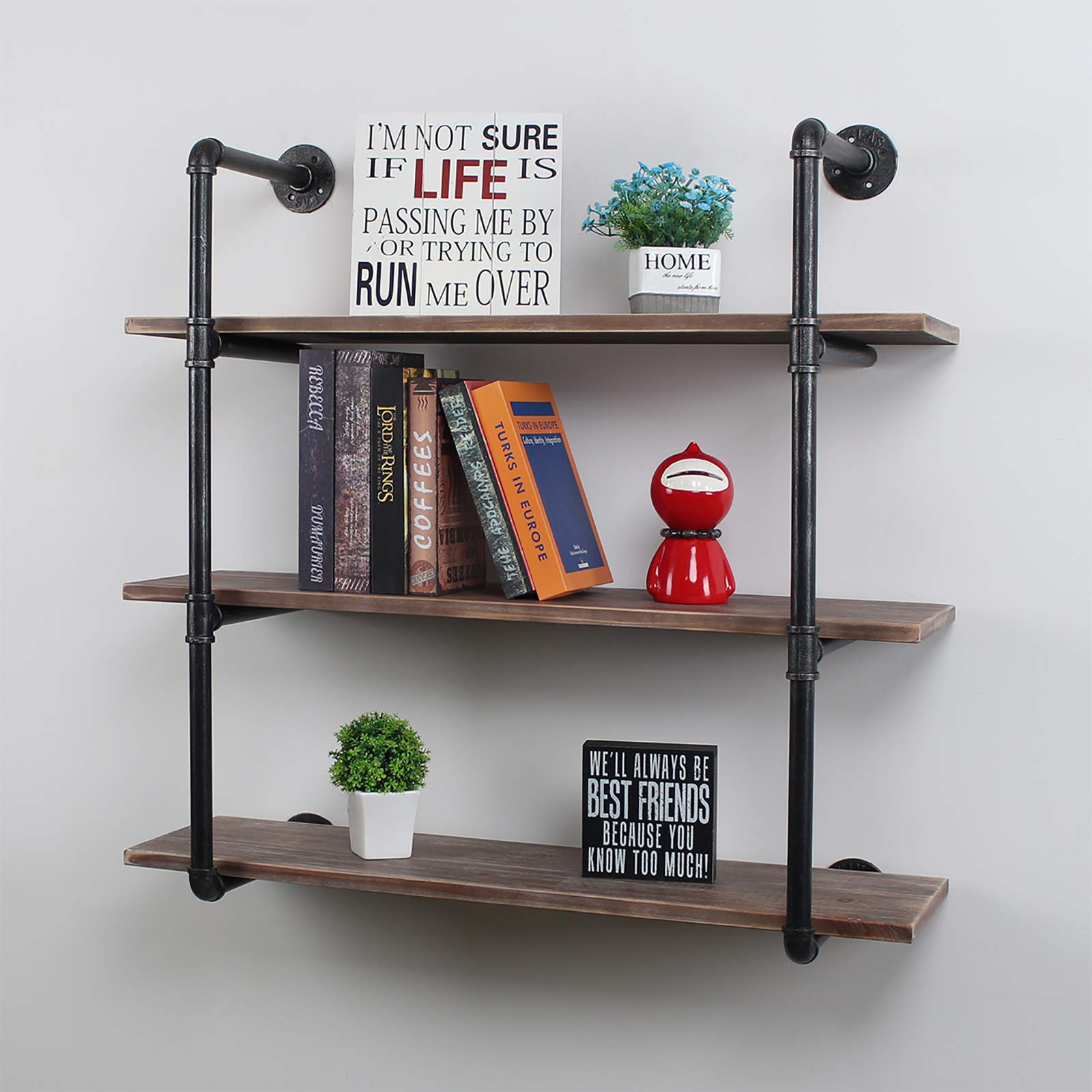 Industrial Floating Shelves Wall Mount,36in Rustic Pipe Wall Shelf,3-Tiers Wall Mount Bookshelf