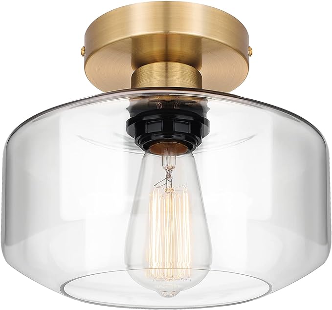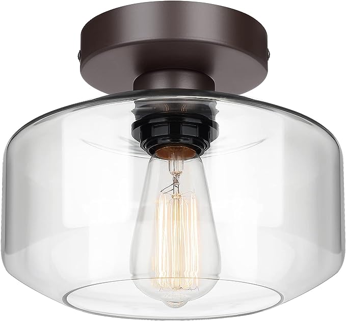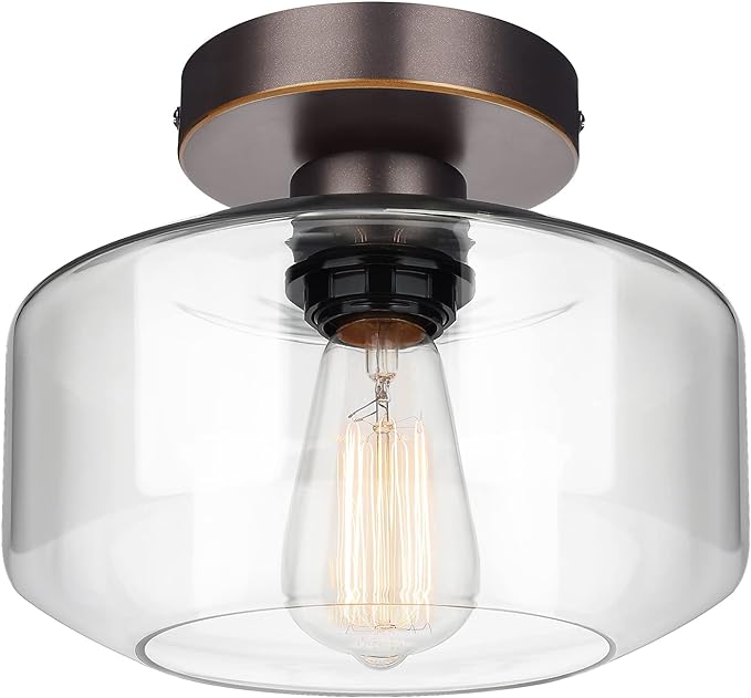 - Wide Application & Perfect Decoration: With the exquisite glass lampshade and Vintage matte base design, the semi-flush mount ceiling light is perfect for Hallway, Entry, Porch, Mudroom, Stairwell, Kitchen, Closet, Kids Room, Dining Room, Bedroom, Living Room, also ideal for commercial areas: Bar, Cafe, Hotel and Restaurant.