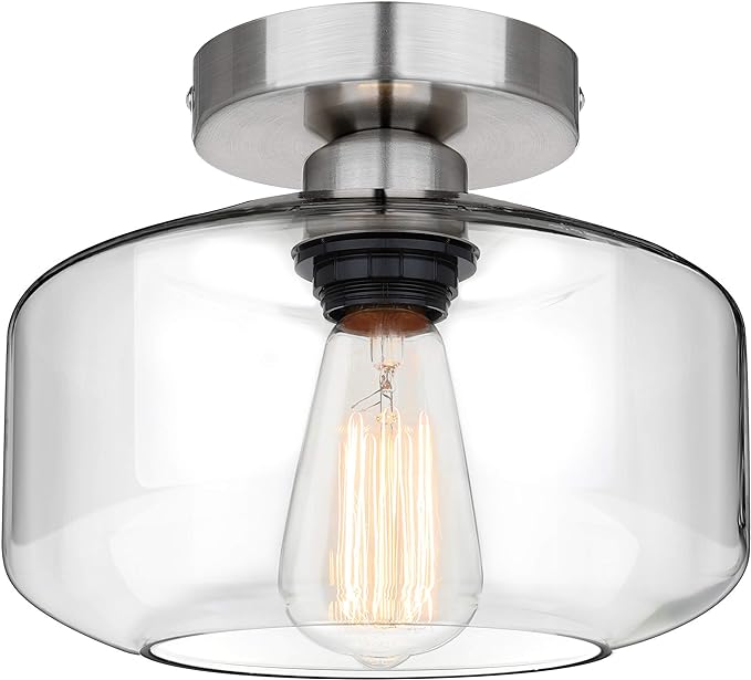 Industrial Semi Flush Mount Ceiling Light, Clear Glass Pendant Lamp Shade
