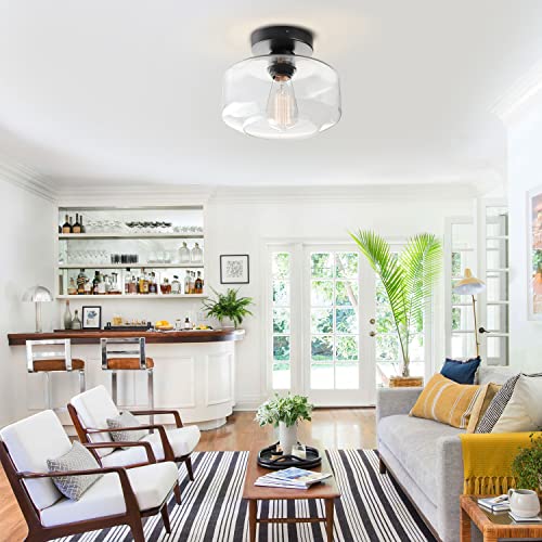 - Flush-mount Design & Antique Style: The semi-flush ceiling light (Glass Shade Diameter:8.66 inch /220mm, Canopy Diameter: 4.72inch /120mm, Lamp Height: 7.09inch /180mm ) featuring a unique clear glass shade and vintage style black matte metal base, bringing a modern twist to its Avant-garde retro design.