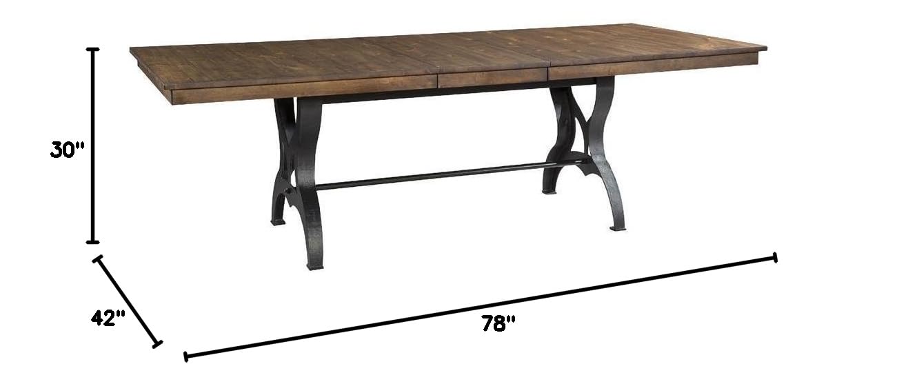 - The District 78-96" Wide Table with Storing Leaf is the epitome of style and practicality. With a unique combination of contemporary and traditional design elements, this table features a solid knotty birch trestle top and cast metal legs that resemble antique sewing machine legs. The cable-driven ball bearing slides make it easy to open and close, and the self-storing 18" leaf allows you to expand the table for larger gatherings. The rustic copper finish gives the table a warm and inviting feel, making it perfect for your home.