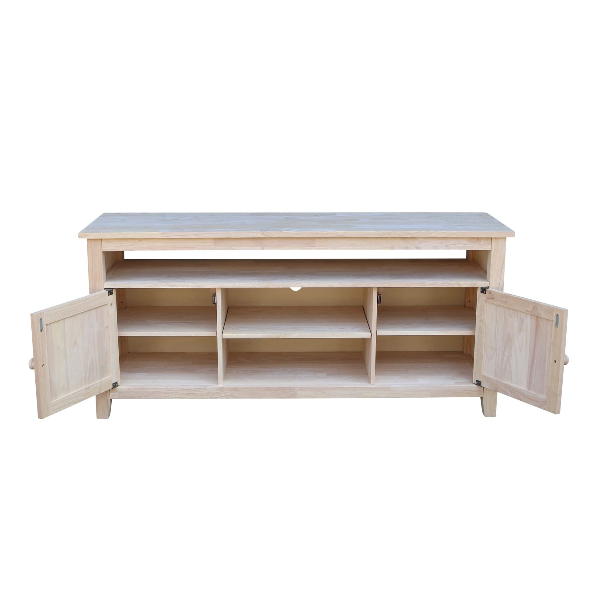 - Solid wood TV stand; size of center shelf: 20.03''W X 15.74''D; center shelf adjustable :yes