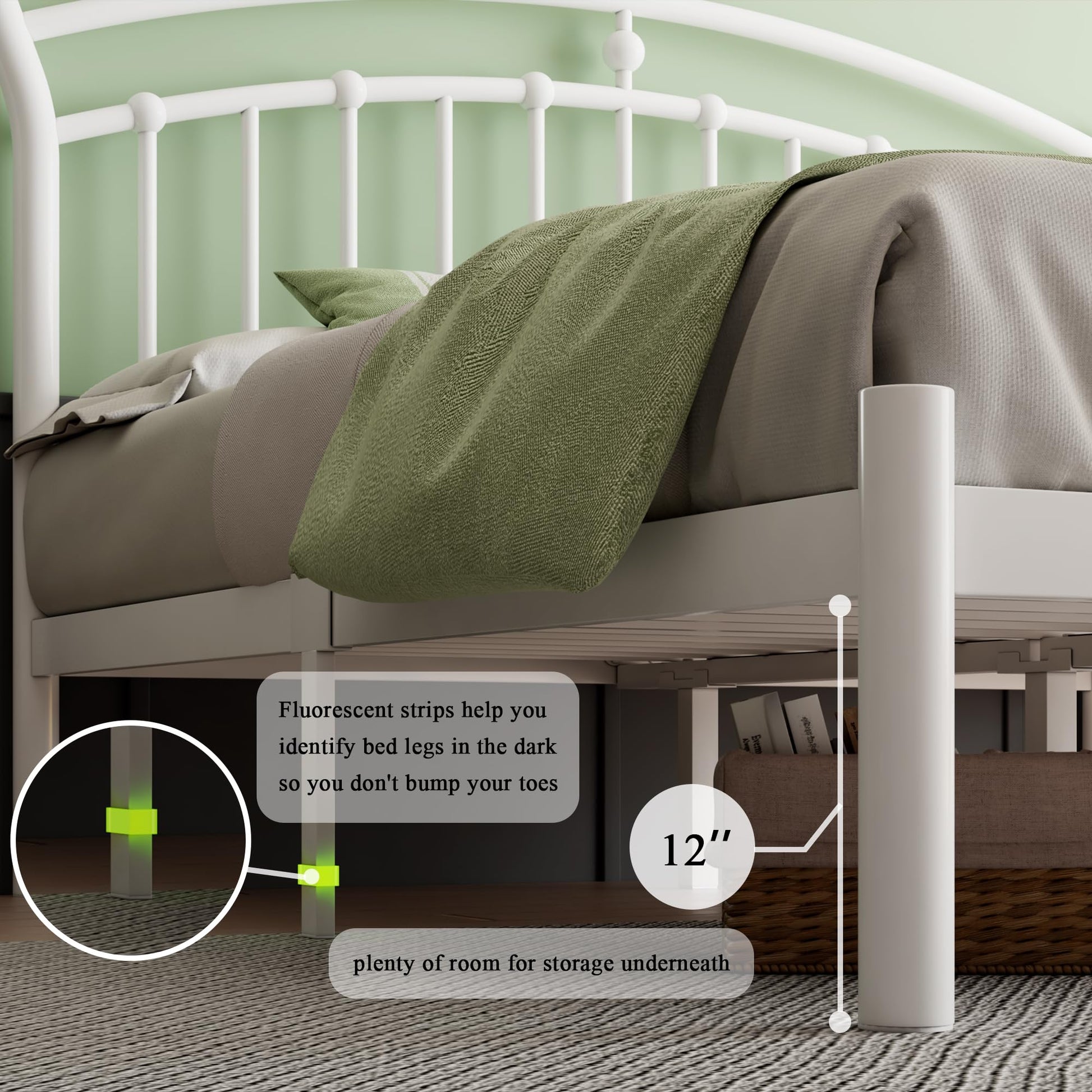 - Protect Your Family: Fluorescent strips help you identify the legs of the bed in the dark so avoid hitting your toes; the corners of the bed frame are rounded and smooth, protecting you and children from danger when acting freely around the bed
