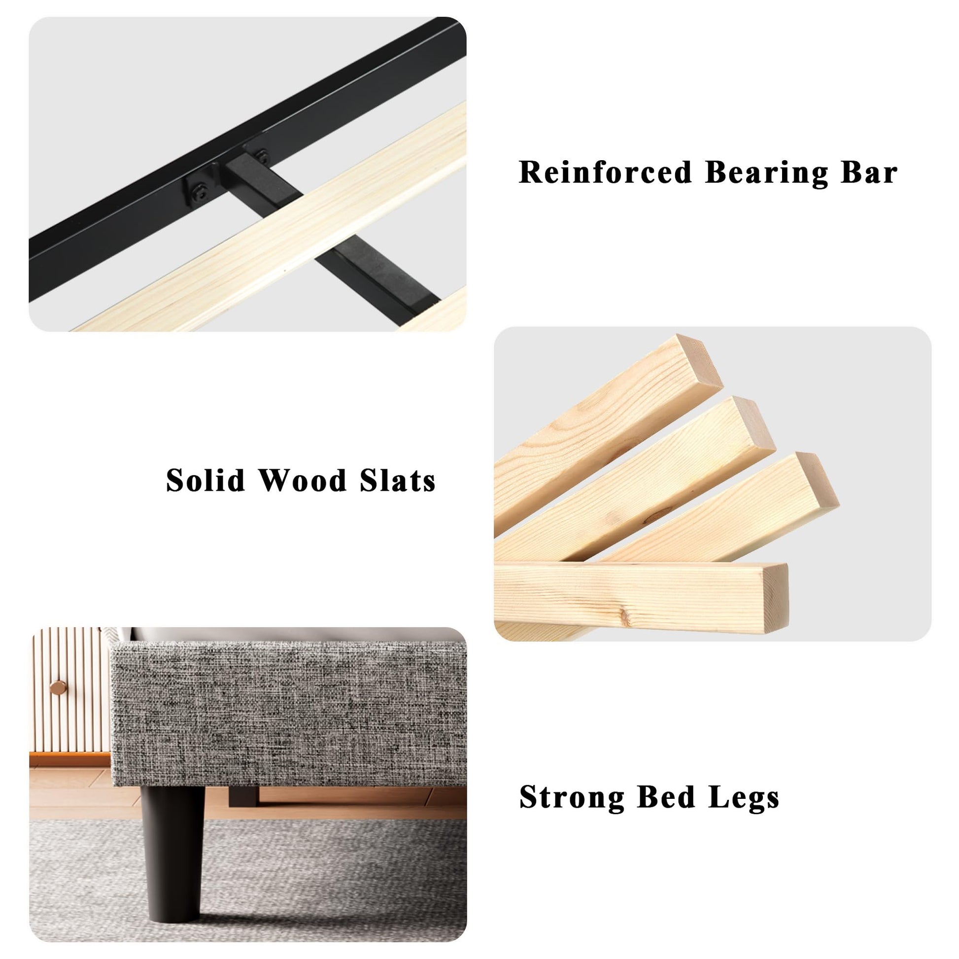 Queen Size Platform Bed Frame with Headboard, Upholstered Bed Frame with Solid Wood