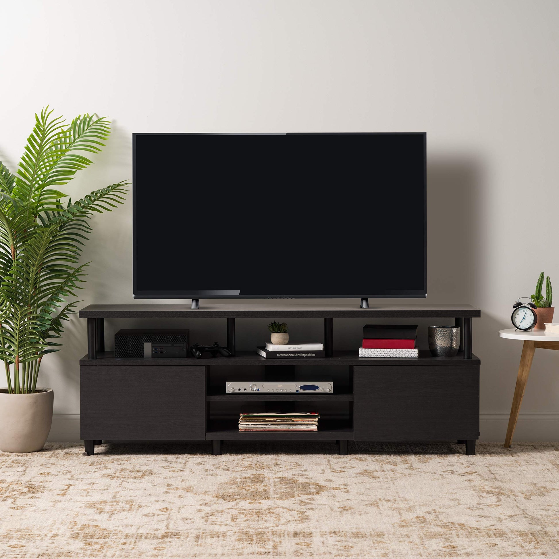 - Adjustable shelves help customize Media storage space, and TV stand with doors lets you keep contents out of Sight