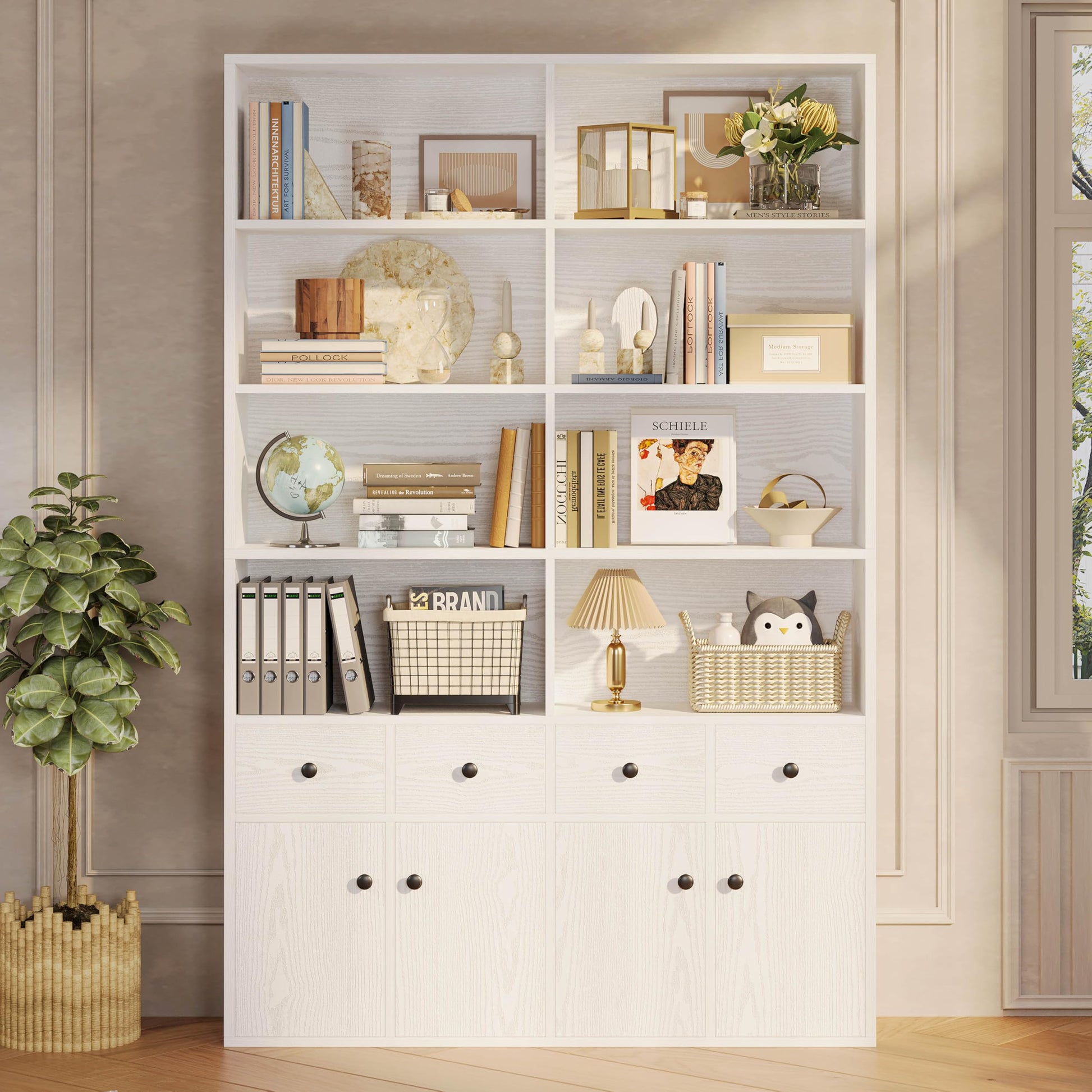 78.7" Bookcase with 4 Drawers and 4 Doors, 6 Tier Large Bookshelf with Storage