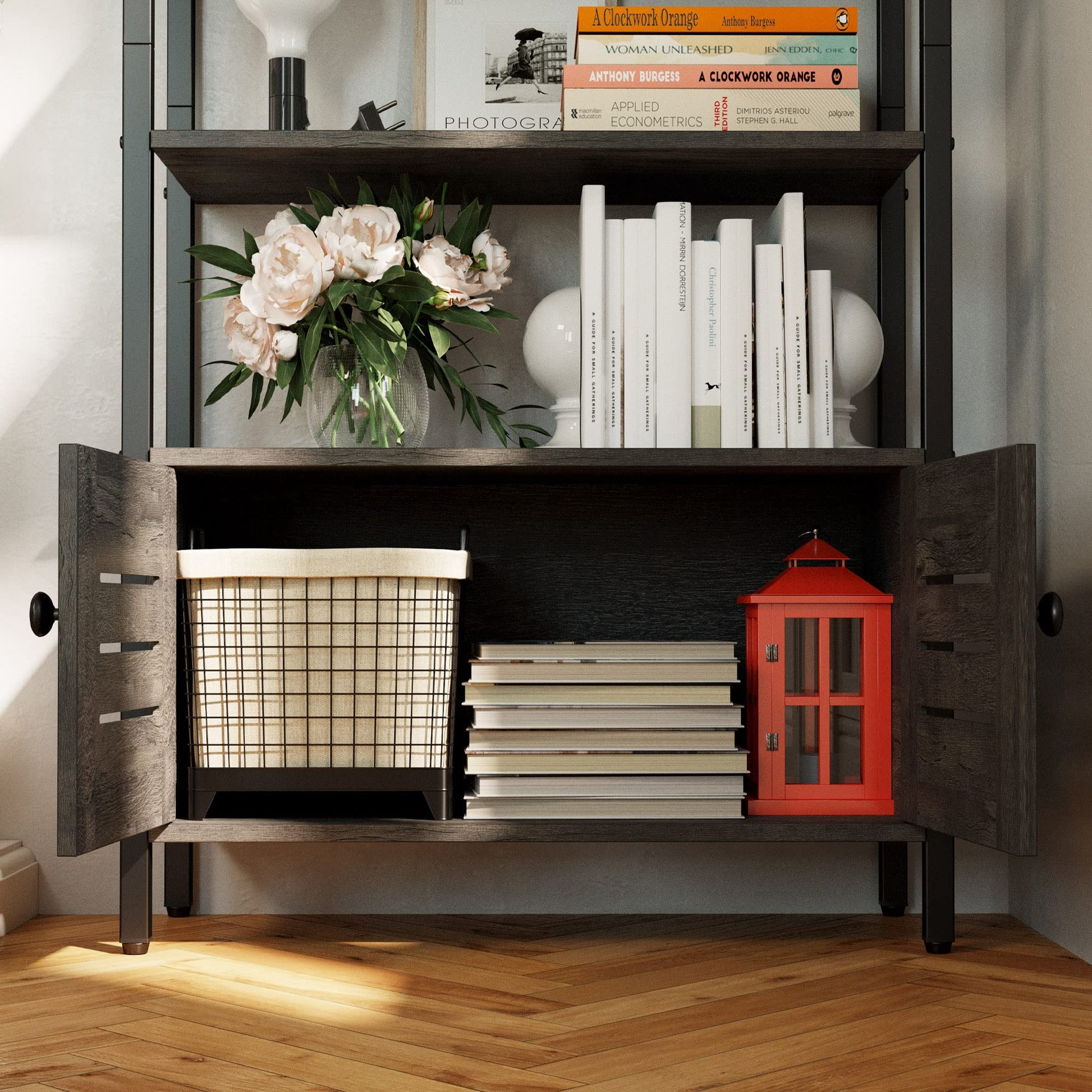 Bookshelf and Bookcase with Two Louvered Doors and Four Shelves, 27.6" Wide Standing