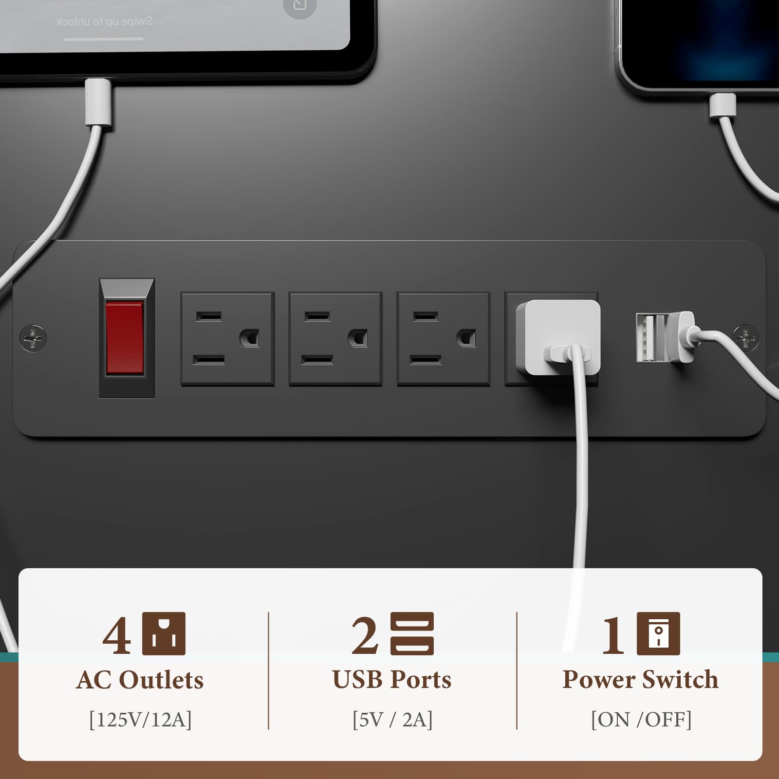 - Charging Station and Wire ManagementThe modern TV stand is equipped with 4 AC outlets, 2 USB ports, and 1 main power switch. It can cut off the power with one click, is safe and durable, and supports charging 6 devices (TV, DVD, WiFi router, etc.) at the same time. Each TV cabinet features a cable hole on the back to prevent wires from getting tangled and to easily plug in all your devices.