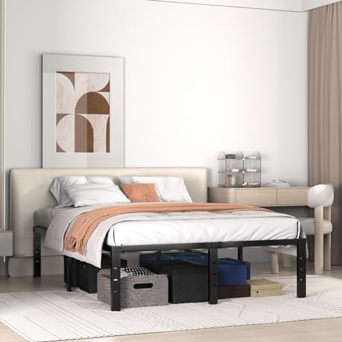 - The round corners ensure a sleek and safe design, minimizing the risk of accidents.18 inch heavy duty frame bed,can store a variety of items, you don't need to worry about things piling up and cluttering the space.Queen bed frame no box spring required abundant storage space will give you a clean and tidy room.