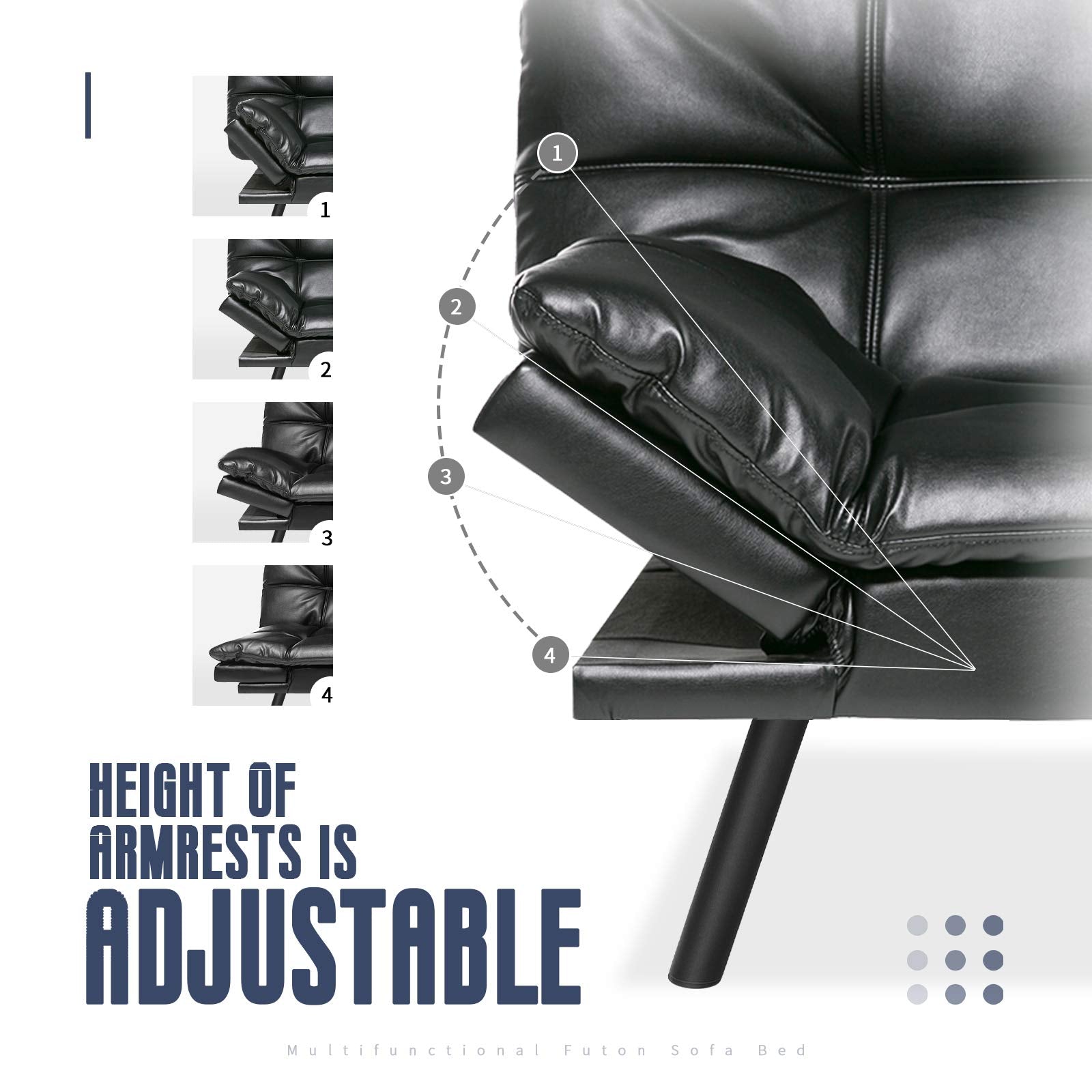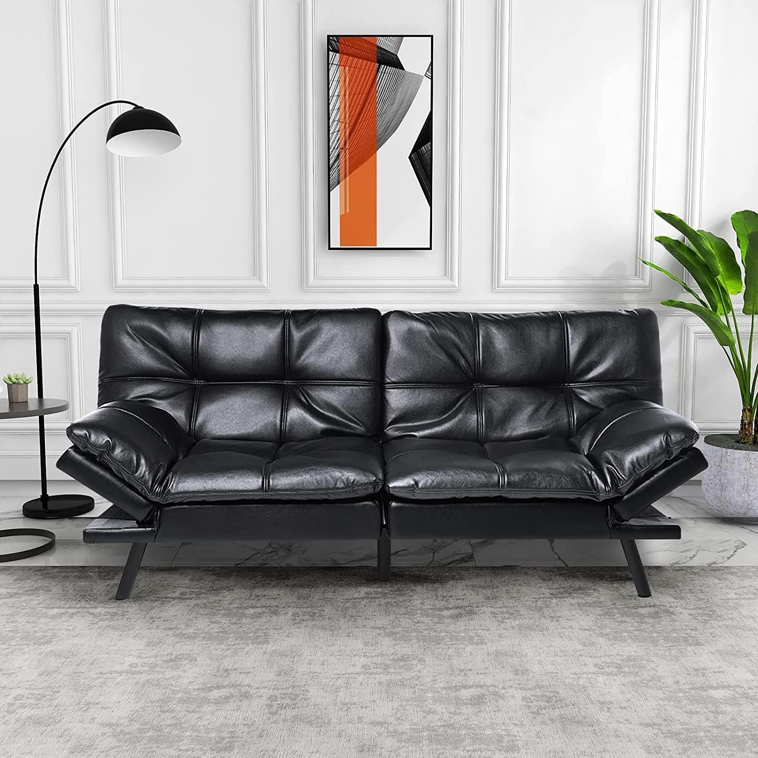 - Stylish & Quality Sofa - Black powder coated sofa legs add a stylish decorative design element that makes this piece of furniture a perfect match for any style of interior. The back and seat cushions are filled with memory foam that is wrapped in durable faux leather for both support and comfort. This convertible futon sofa bed fuses comfort and style that will last in your living space for years to come.